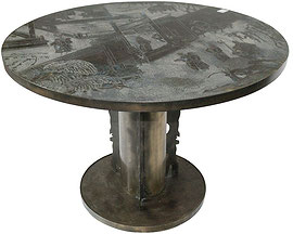 Steel and gold leaf slate circular coffee table by Paul Evans provenance: Acquired directly from the artist, Collection of Daniel and Marian Malcolm literature: Paul Evans: Crossing Boundaries and Crafting Modernism, Kimmerle (ed.), pg. 151