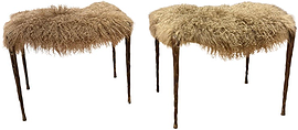 Pair of "suave" benches in Mongolian fur and hammered patined Bronze USA 2025 Studio production Seat height:17in.