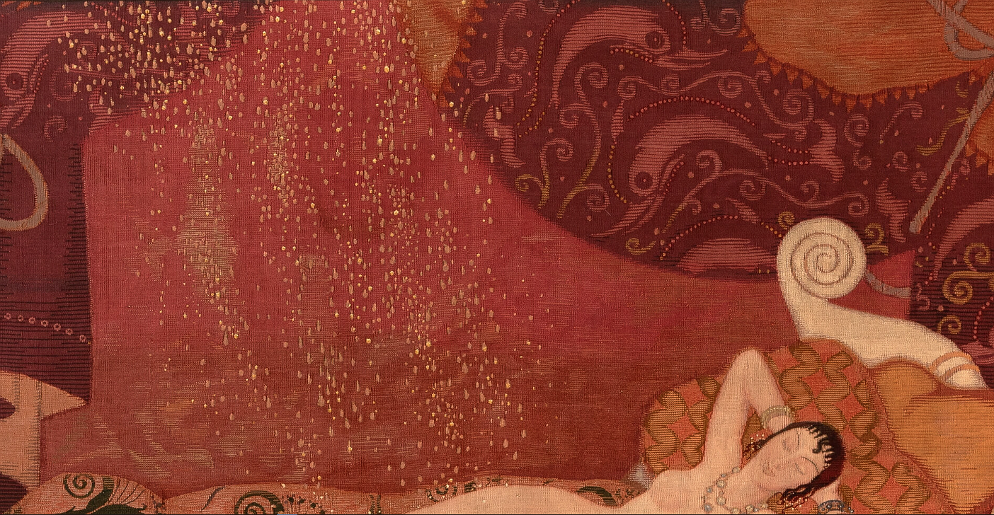 Wool Tapestry "Danae" by Edmund Dulac amd woven by Léo Belmonte Signed to lower right corner in weave: Edmund Dulac, 1915 Inscribed to lower left corner in weave: TISSE PAR LEO BELMONTE PRO PAUL LEDERLIN. France: 1915 LITERATURE: International Studio, vol. 62, New York, 1917, p. 159 (similar example illustrated).