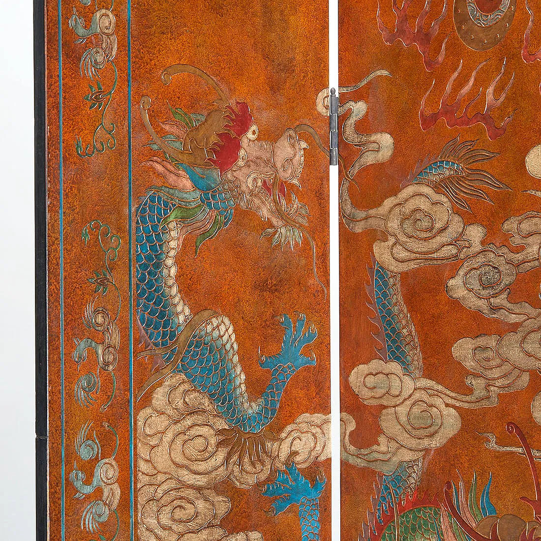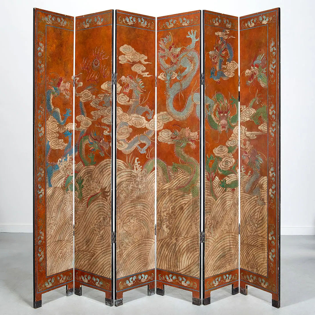 Chinese coromandel lacquer dragon folding screen. China: circa 1950 Private Collection: 860 Fifth Avenue, NYC