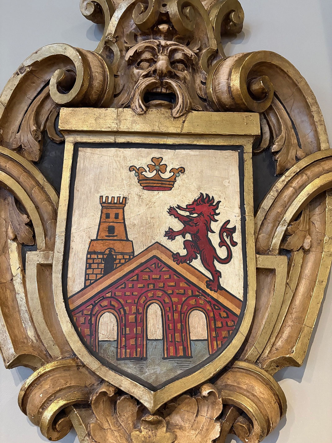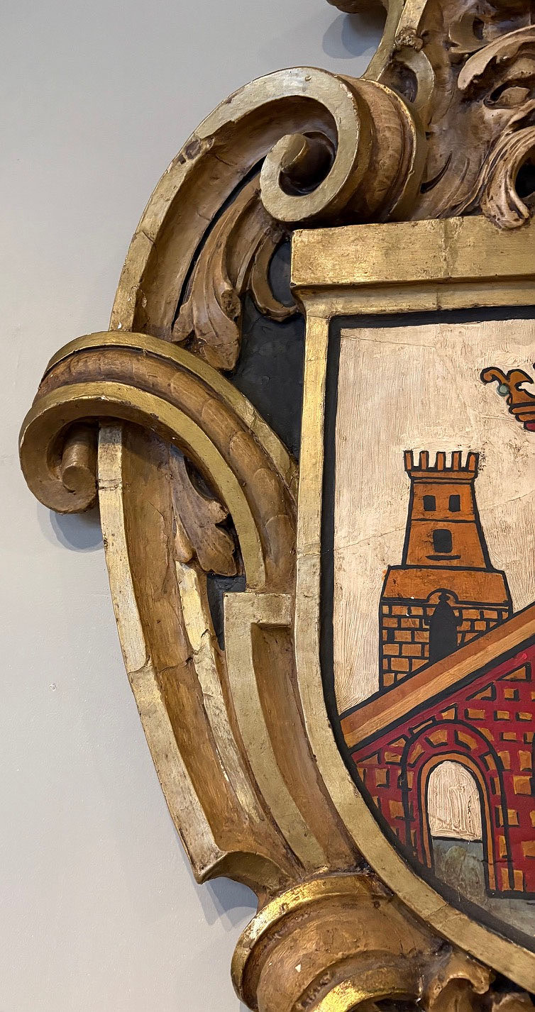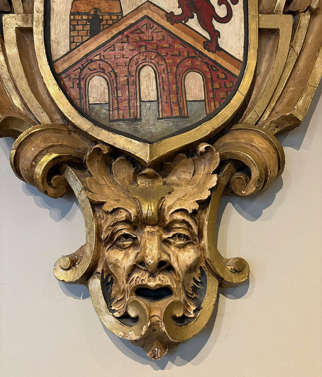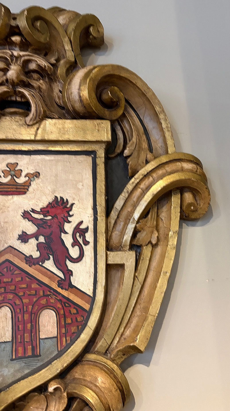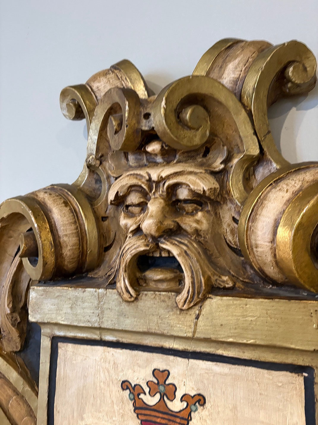 Blason Armorial en Bois Peint de Style Renaissance Espagnole
