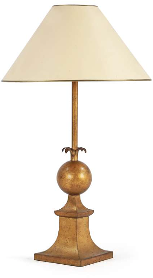 Lampe de table en tôle doré à la feuille d'or. France: circa 1950