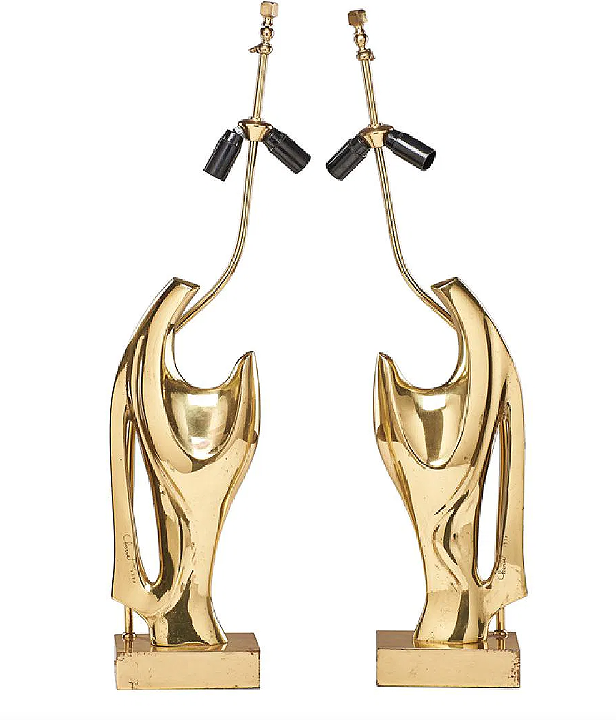 Pair of Cast Bronze Madonna Table Lamps by Alain Chervet France, 1978; Signed "Chervet" and dated