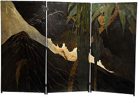 newLacquer, crushed egg shells Spanish tropical mountain landscape folding Screen by Gaston Priou