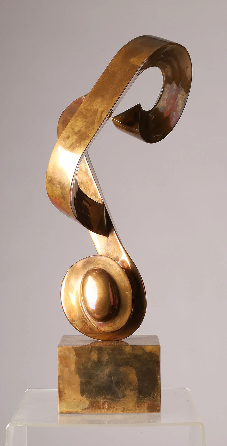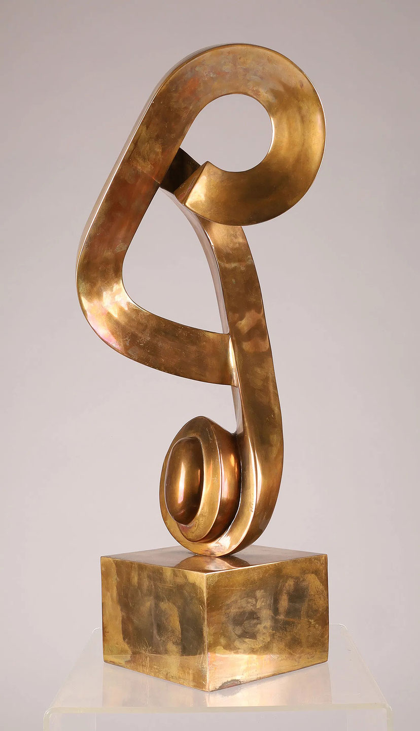 Modernist Abstract Polished Bronze Sculpture by Hanne Harris signed on the side A Harris 1/5 and stamped on the base. Canada: circa 1970