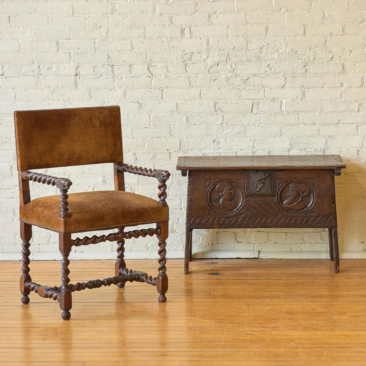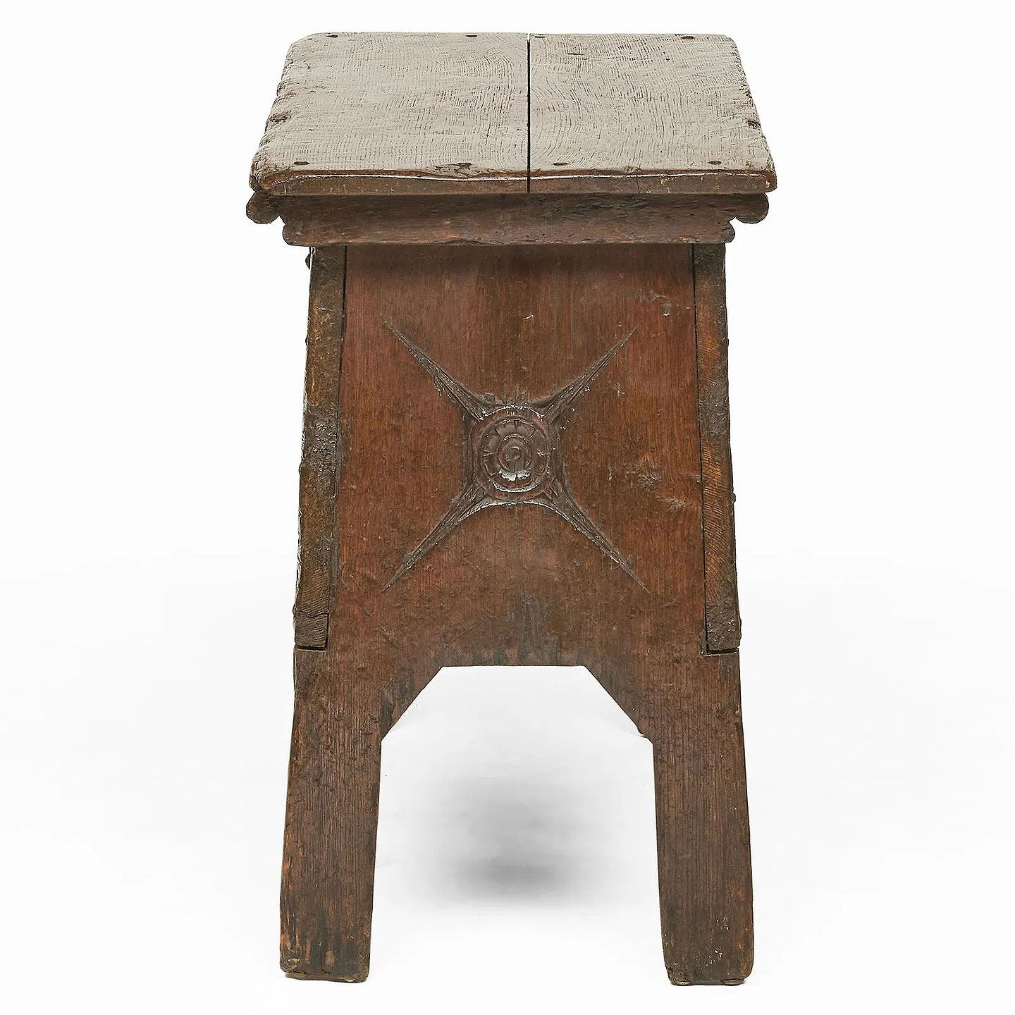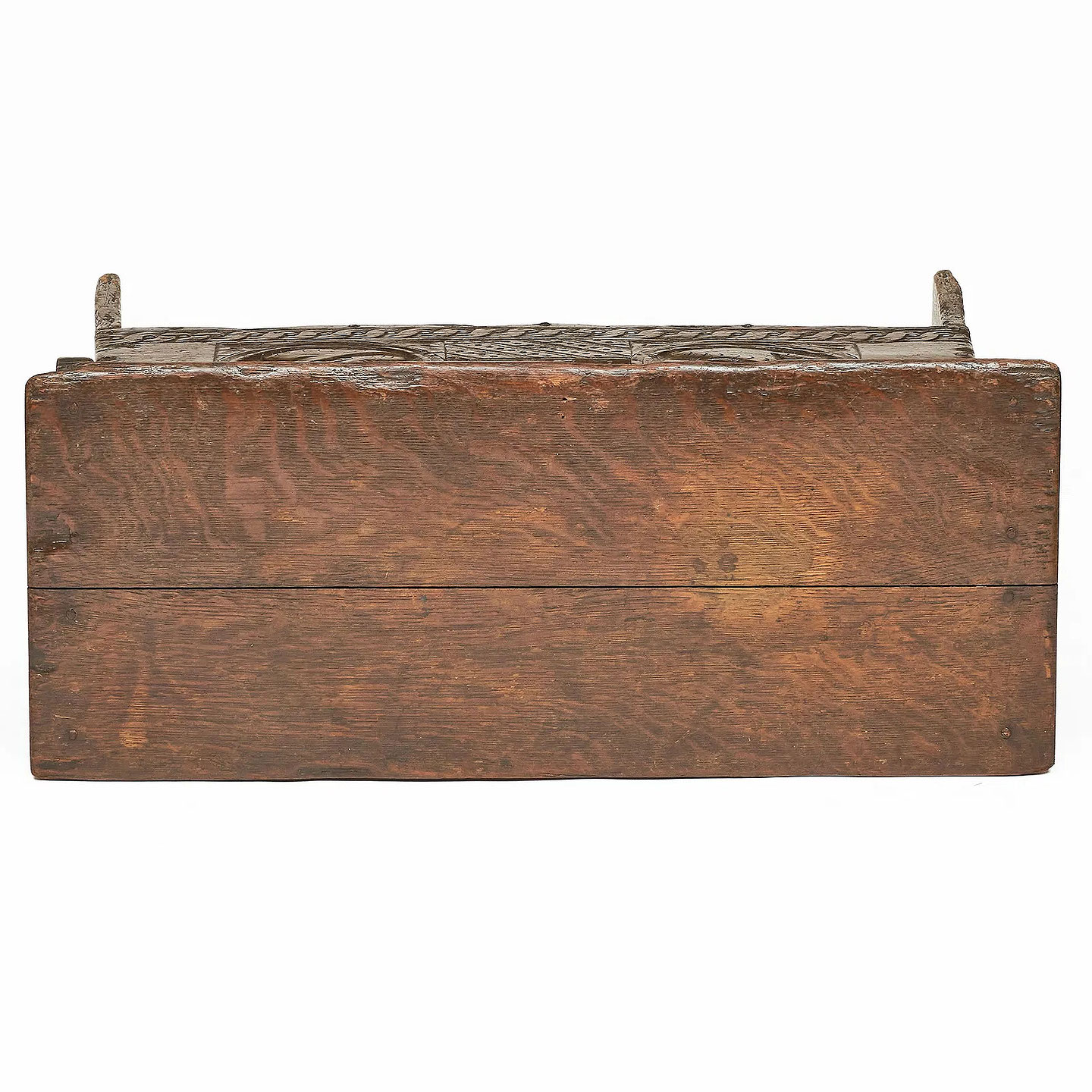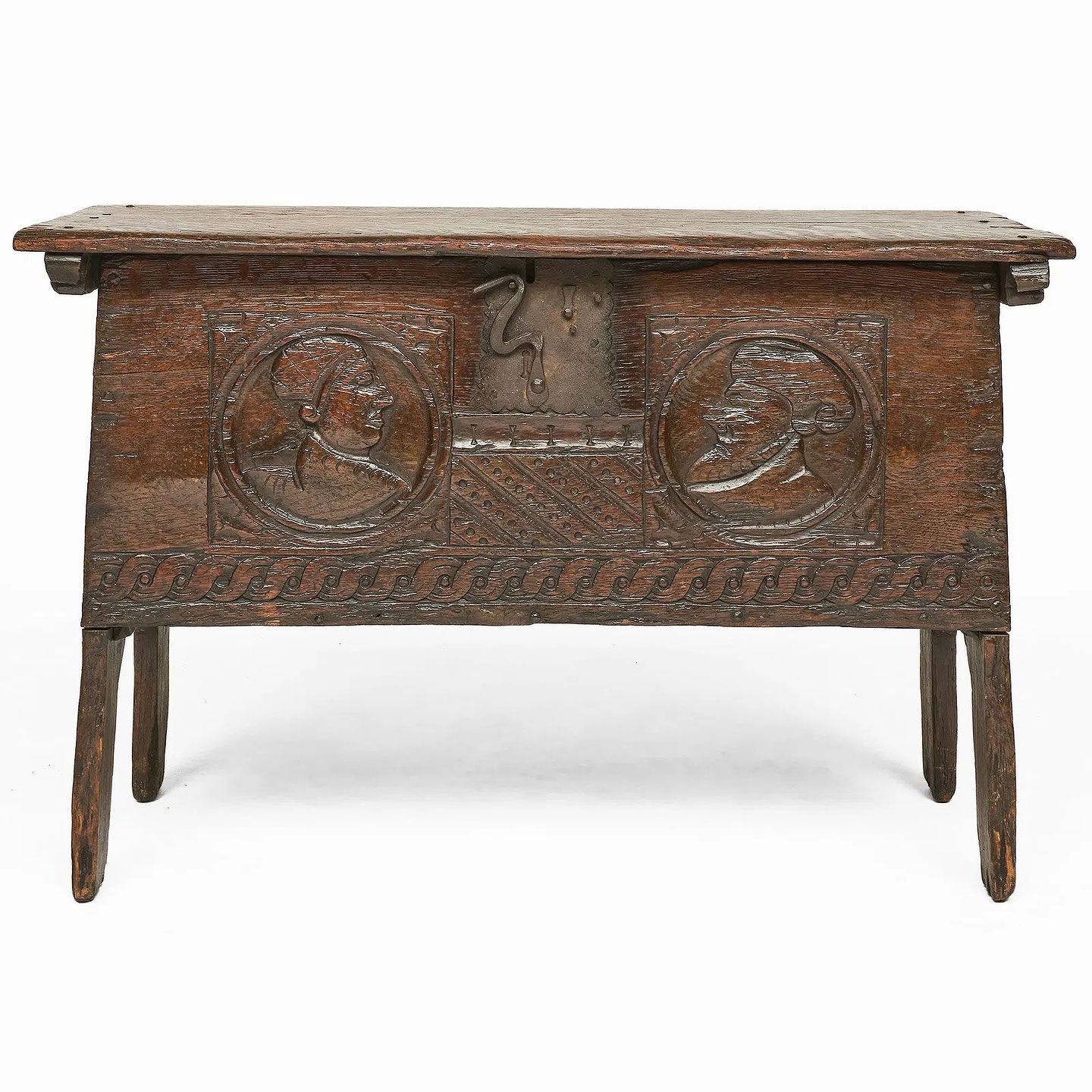 Elizabethan Carved Oak 'Romayne' Boarded Chest England: circa 1550