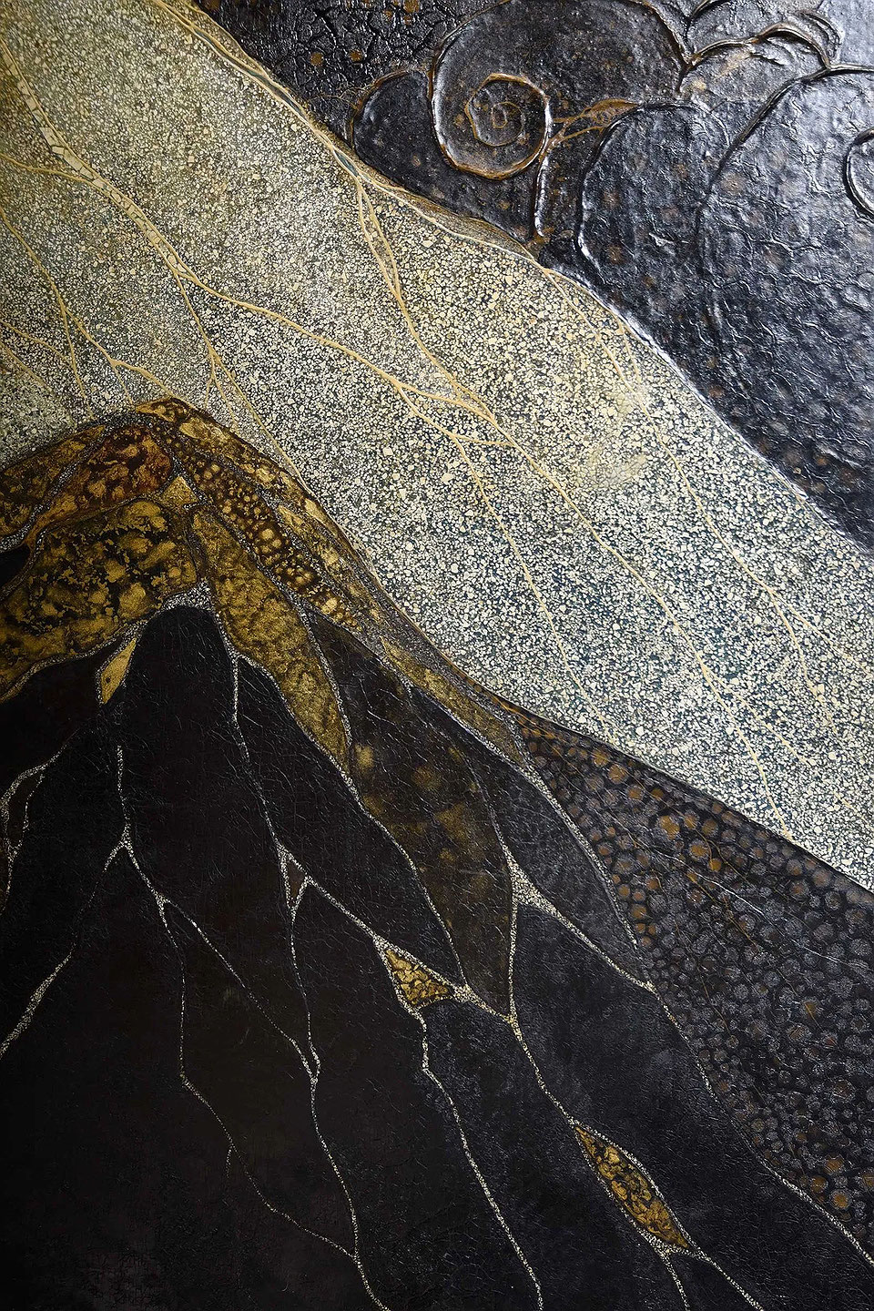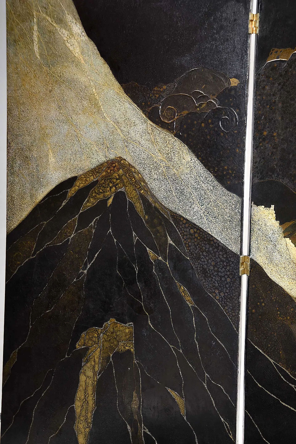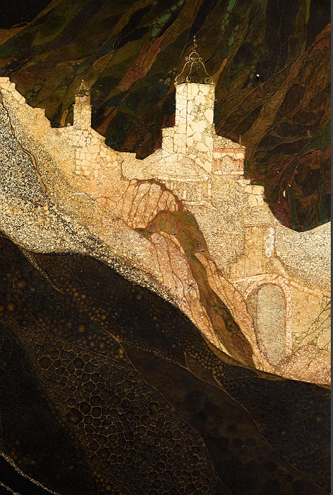 newLacquer, crushed egg shells Spanish tropical mountain landscape folding Screen by Gaston Priou