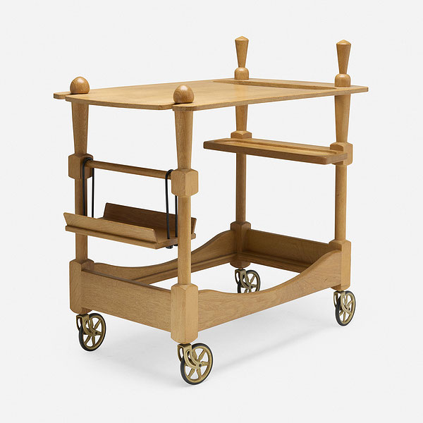 Laminated Oak Bar Cart by Guillerme et Chambron who created Votre Maison in 1949 with Émile Dariosecq, France, c. 1955. Provenance: Private Collection