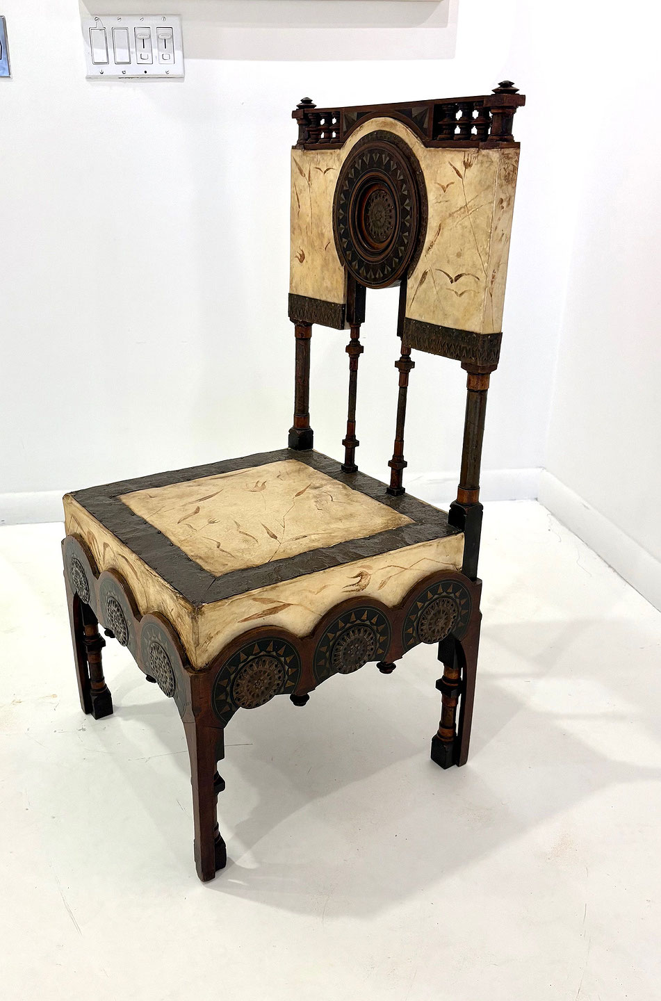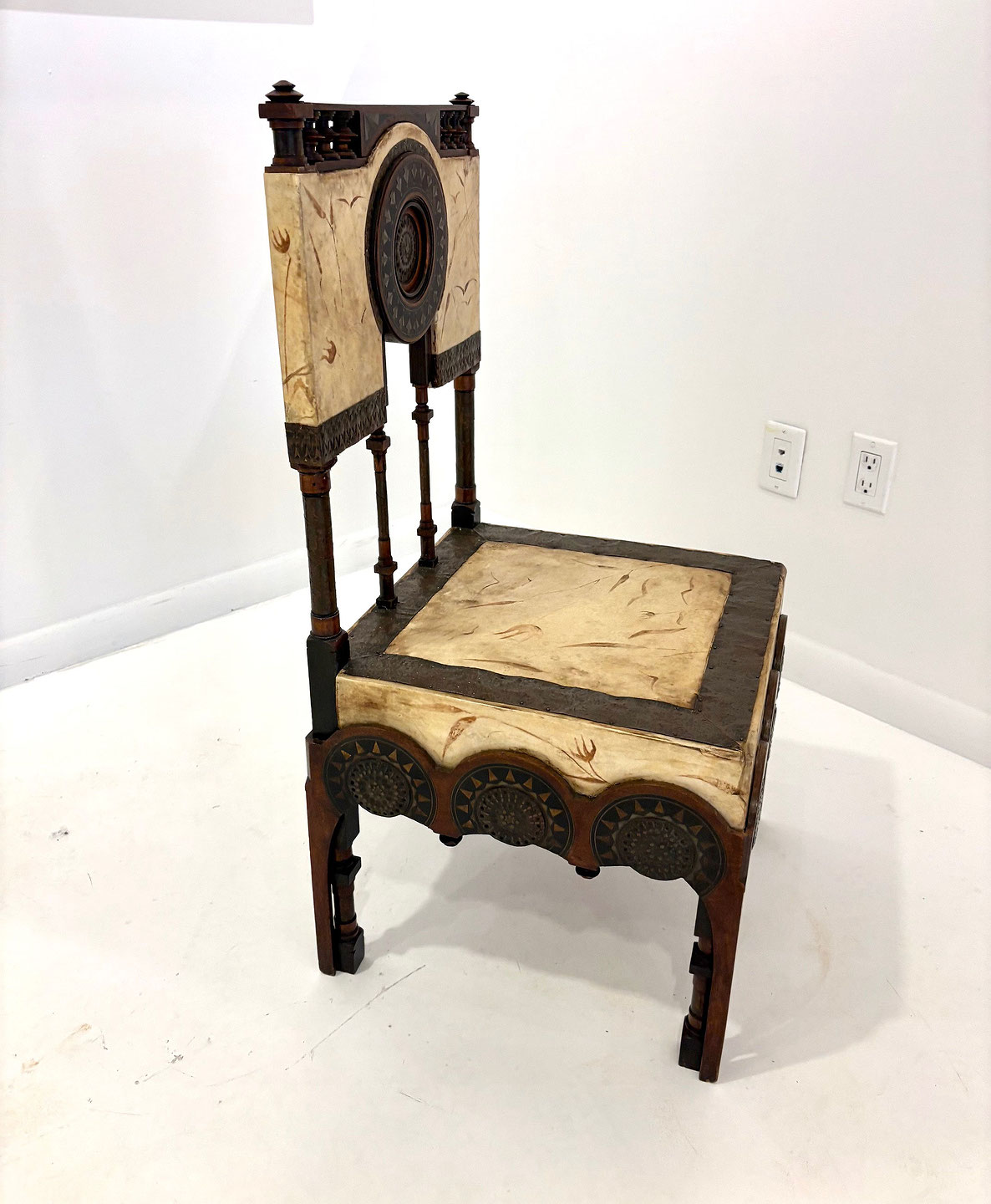 Rare Copper and Parchment Side Chair by Carlo Bugatti.