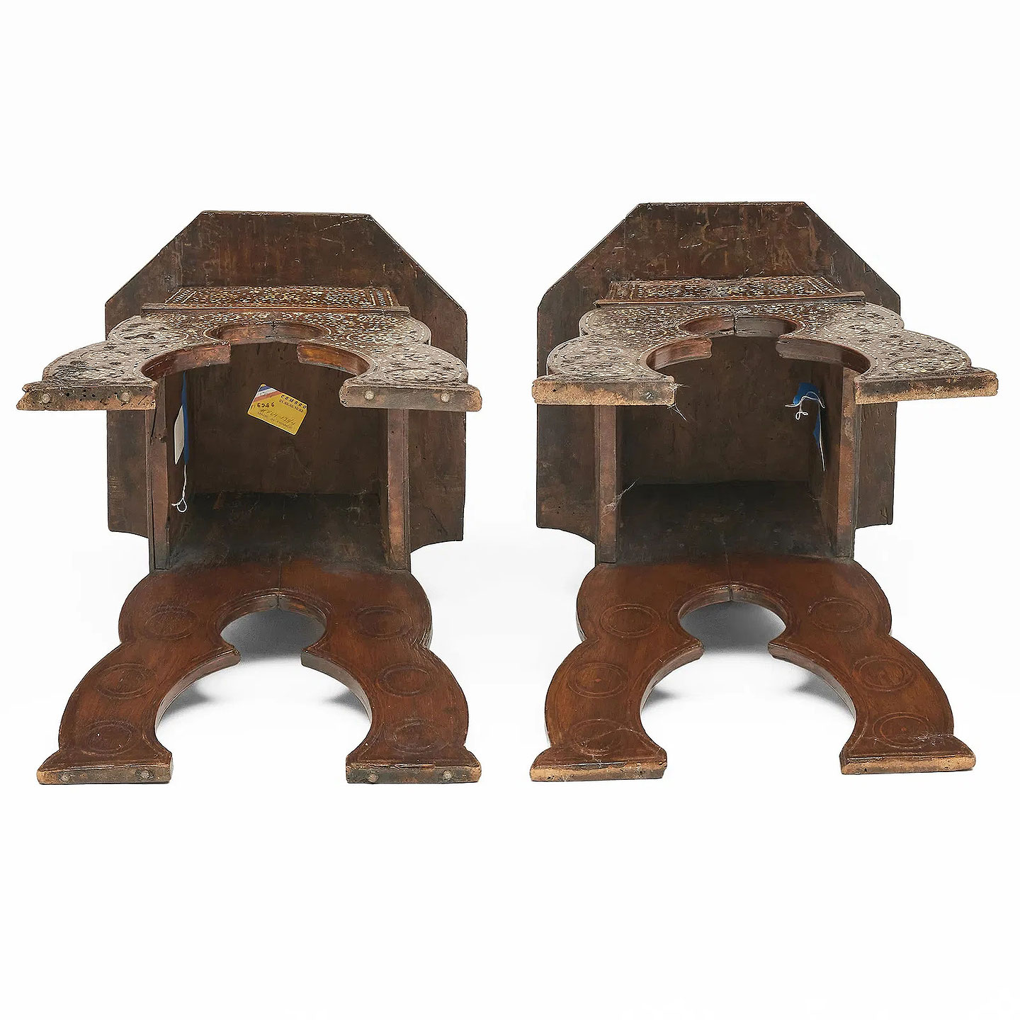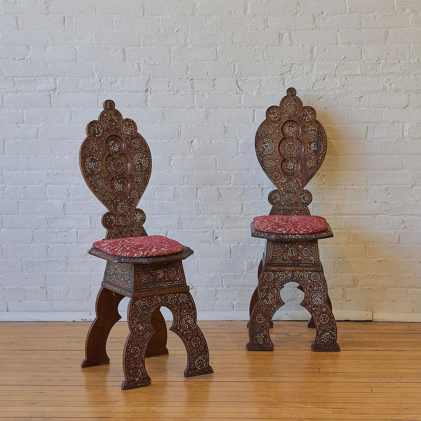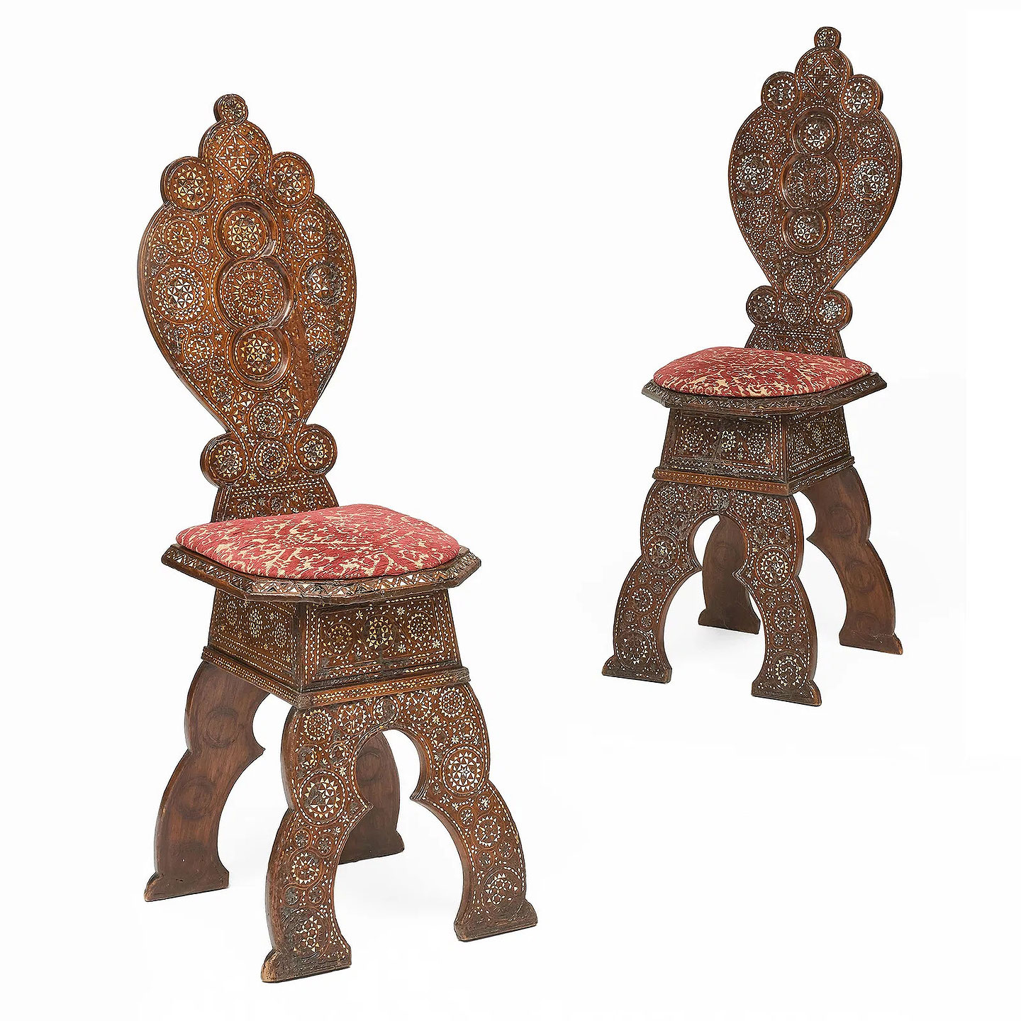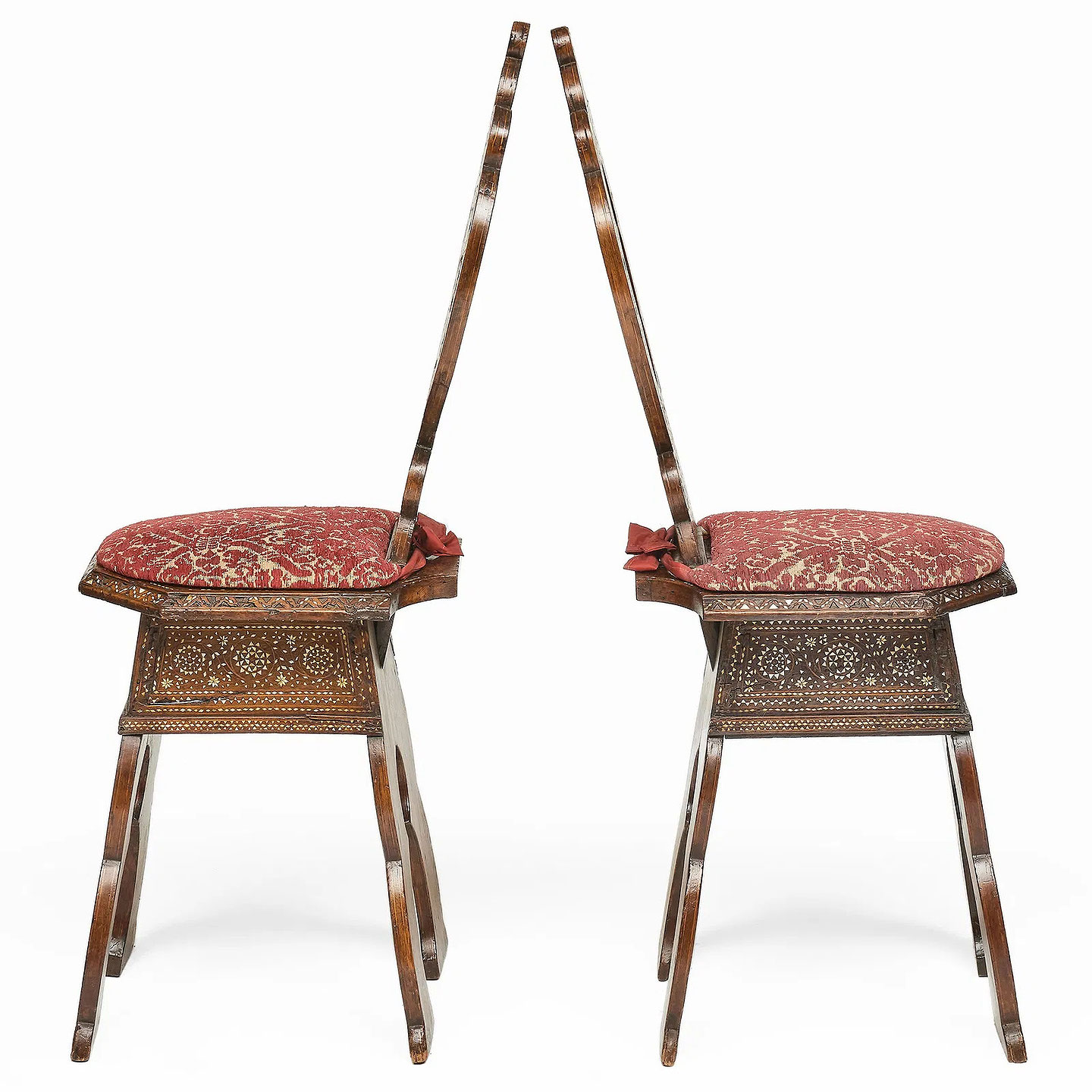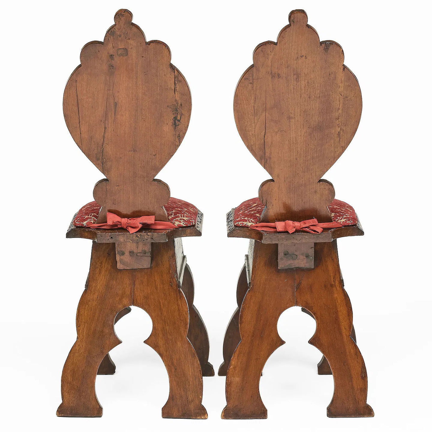 Pair of North Italian Bone Inlaid Walnut Sgabelli Hall Chairs Italy:circa 1800