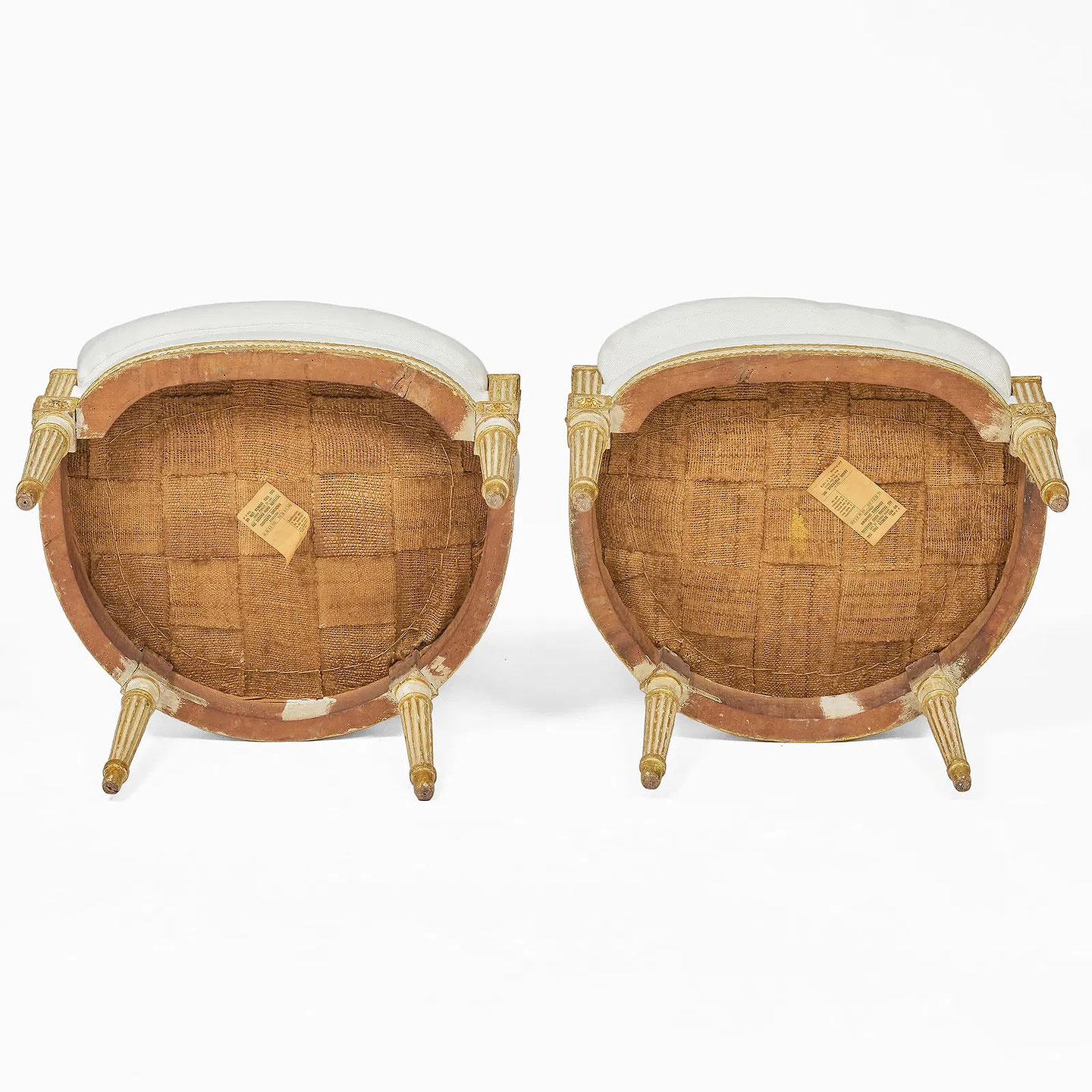 Set of Four Louis XVI Painted and Parcel-Gilt Fauteuils en Cabriolet