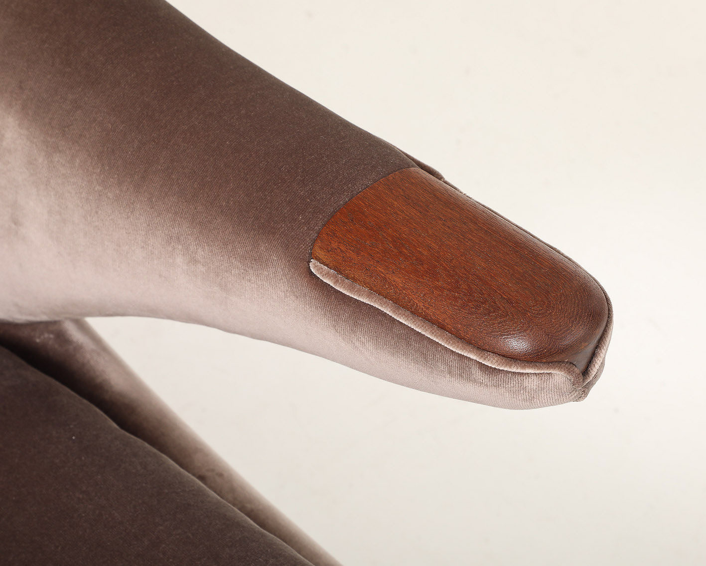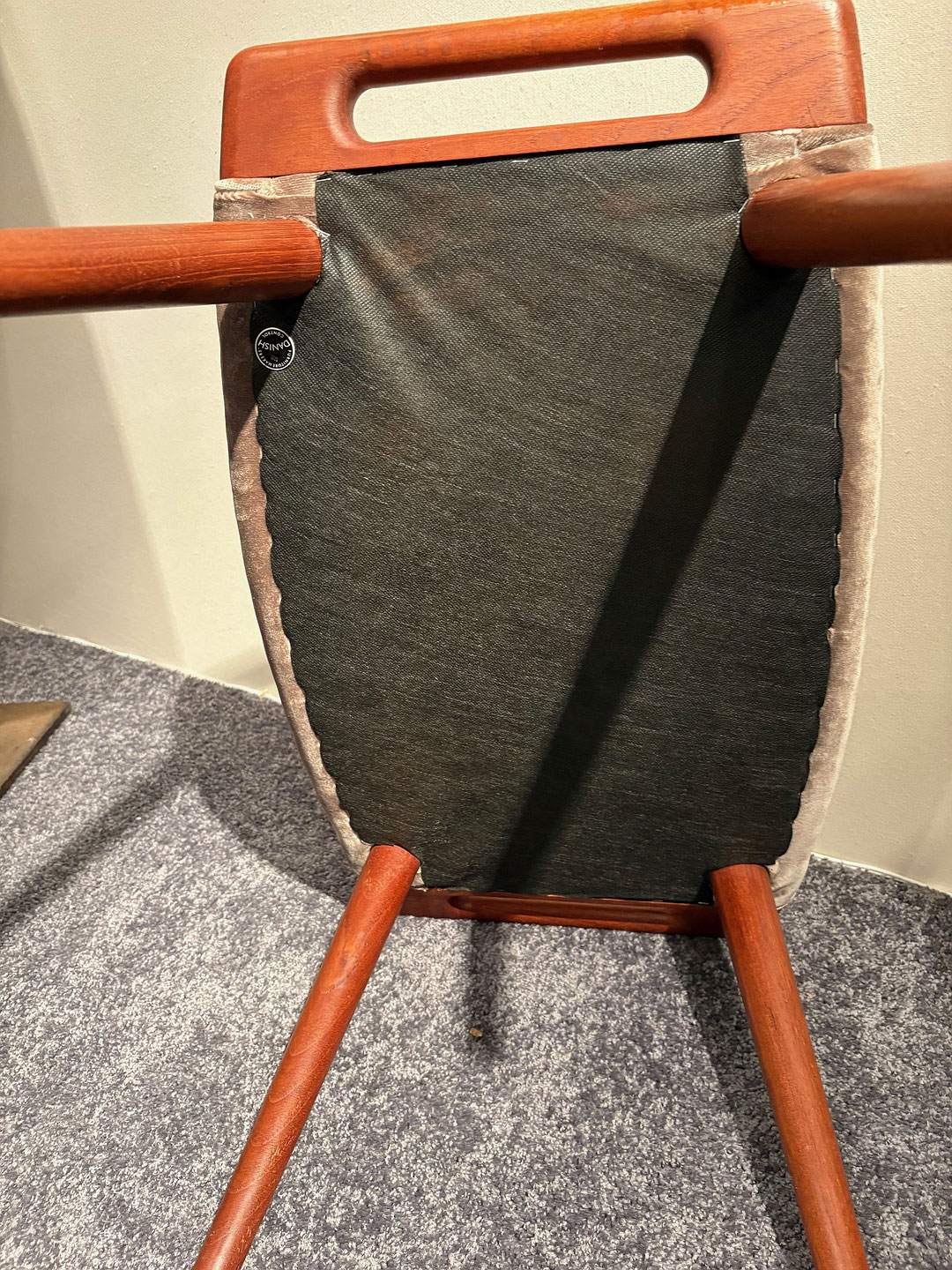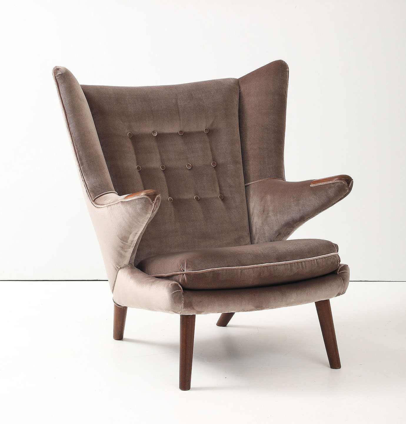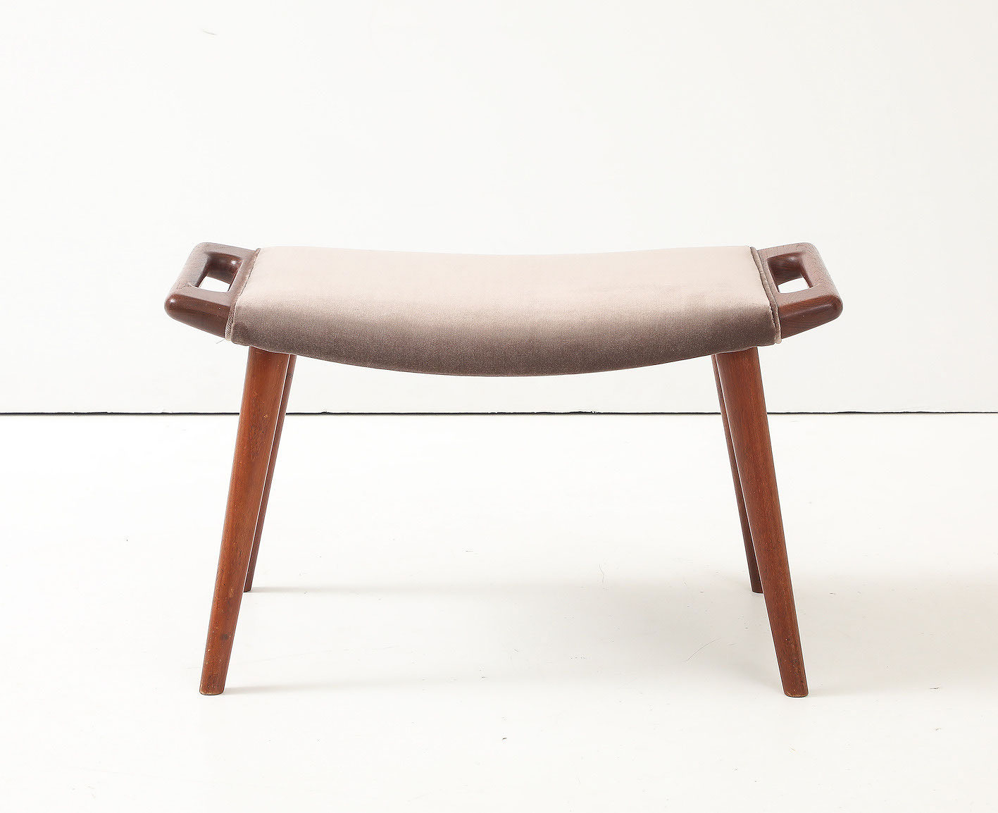 Teak ''Papa Bear'' Chair and Ottoman by Hans J. Wegner for A.P. Stolen, Signed with metal tag: "Furnituremakers Danish Control". Denmark: circa 1950 seat height: 16.5 Dimensions of the ottoman H:16 W:27.5 D:16 in. Provenance: Acquired in 1959 by the original owner | Private Collection, Duluth Minnesota . literature: Hans J. Wegner's 100 Chairs, Oda, pg. 49 Wegner: Sitting Pretty, Nielsen, pg. 70