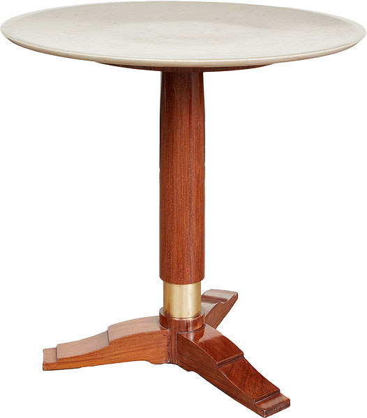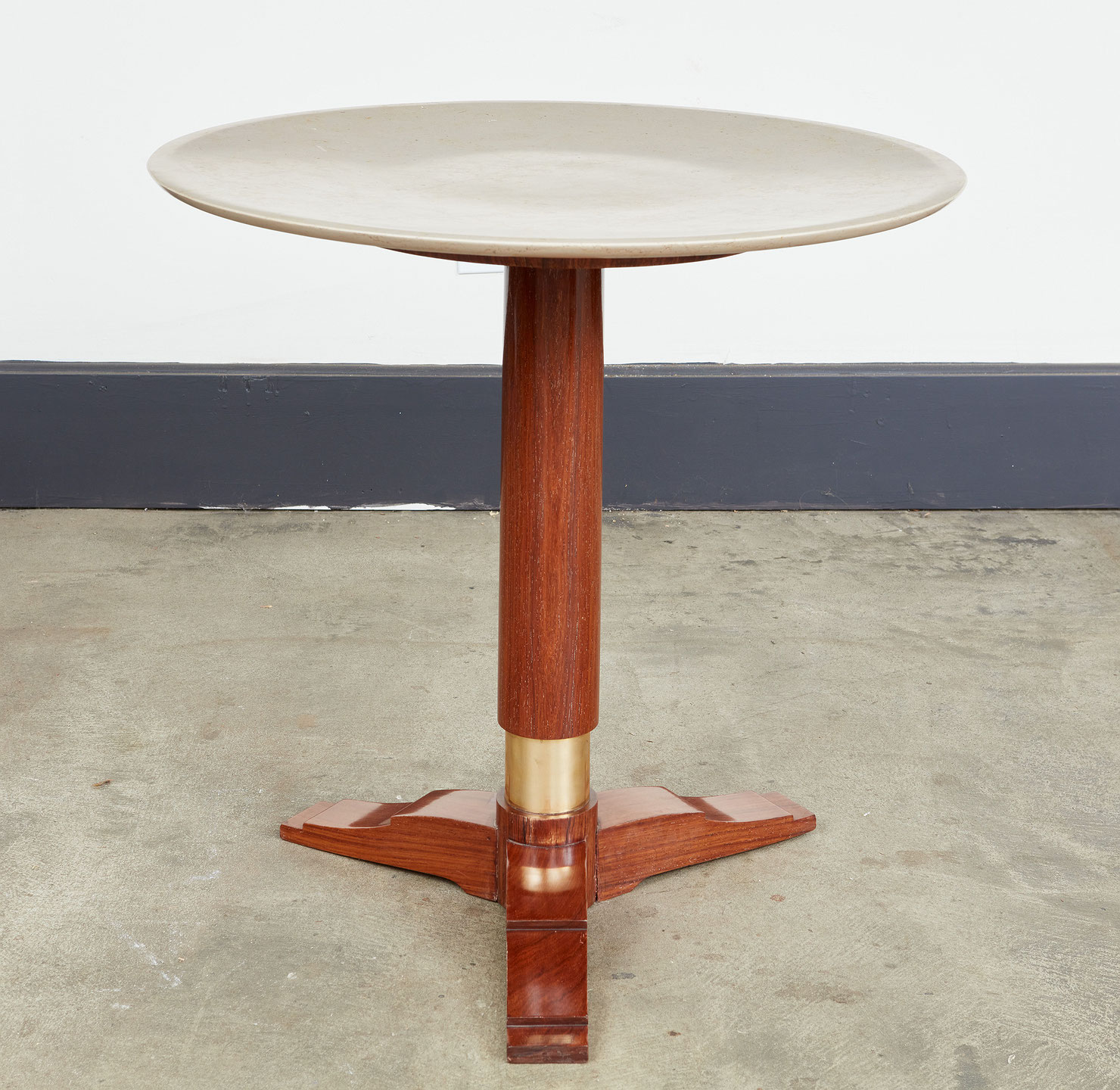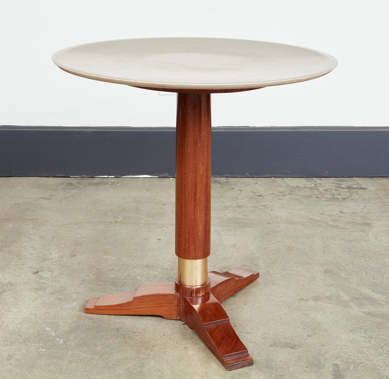 Italian mahogany mid century side table with stone top. Italy: circa 1950
