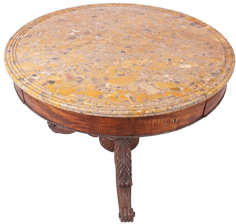 Mahogany Louis Philippe gueridon with Siena marble top with inset with 4 drawers France: circa 1840
