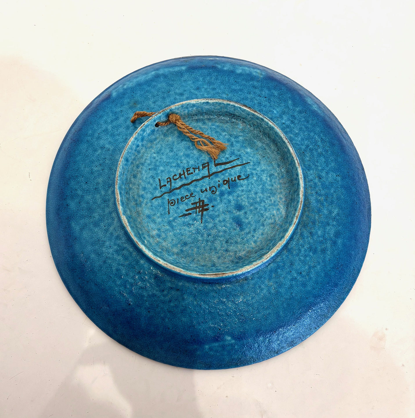 Persian Blue Wall Ceramique Plate by Edmond Lachenal. Signed: Monogrammed "EL piece unique". France:circa 1930