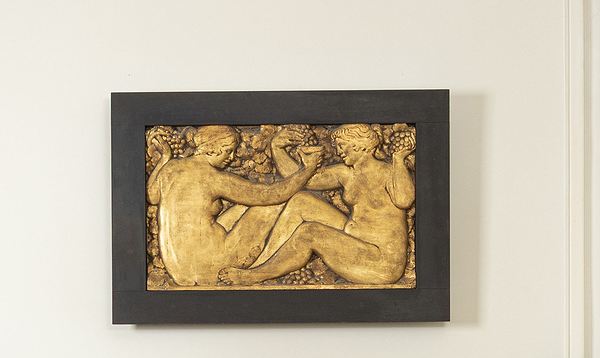 Richard GUINO (1890-1973) Art Deco gilt plaster bas-relief depicting a bacchanal figure. Signed and dated "GUINO 1922". France c.1922