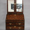 Extrêmement rare sécrétaire colonial anglais en ébène de macassar colonial anglais du début du 18ème siècle avec portes, couvercles et façades de tiroirs en placage "oyster veneer", les côtés et les bois secondaires sont tous en ébène strié massif ayant une riche patination, la partie supérieure avec deux portes miroir cintrées dissimulant deux tablettes amovibles une rangée de cagibi et deux tiroirs, sur une glissière à bougie simple, la partie inférieure avec un intérieur en gradins, d'autres trous pour pigeons et un puits coulissant, sur deux tiroirs courts et deux longs Inde ou Sri Lanka: circa 1720