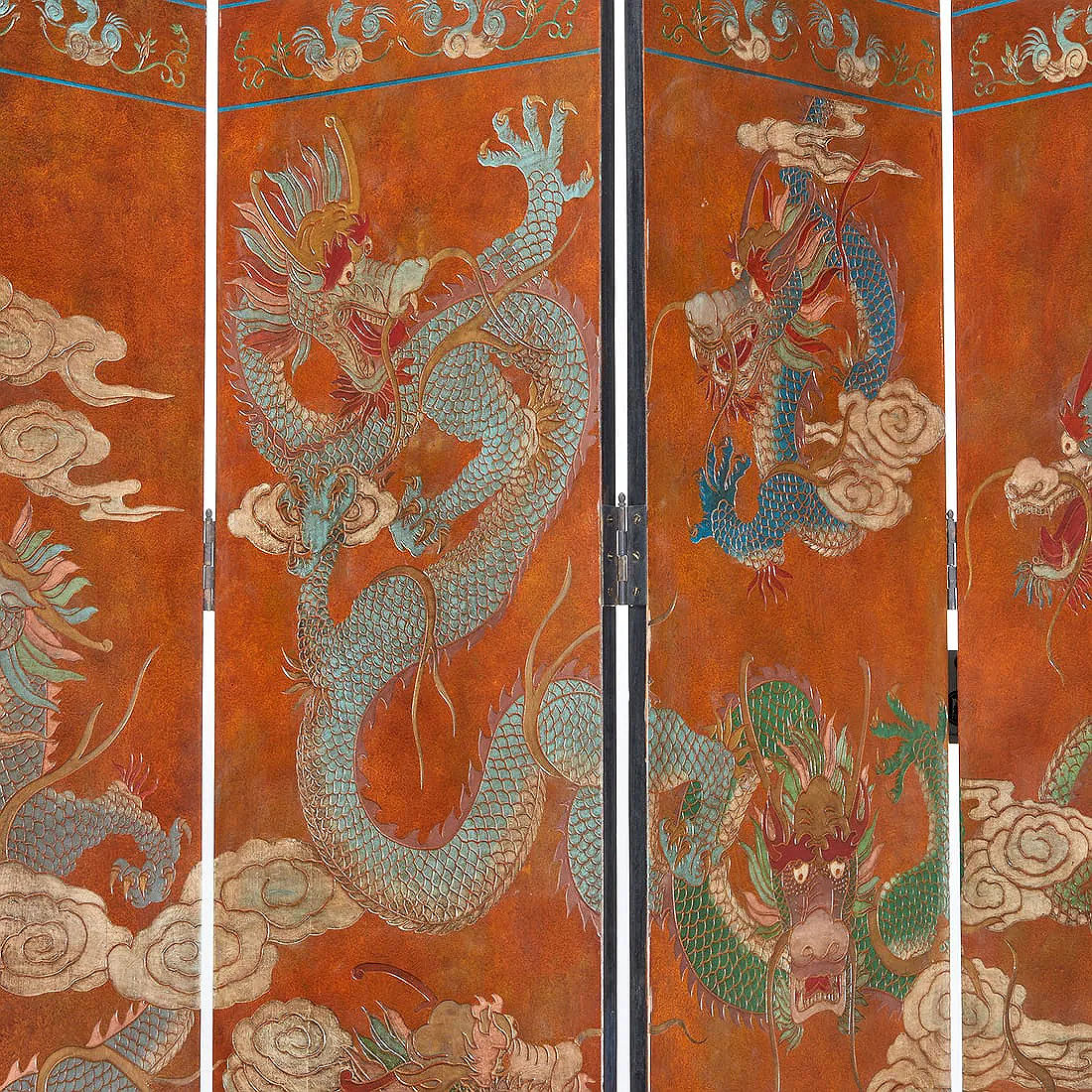 Chinese coromandel lacquer dragon folding screen. China: circa 1950 Private Collection: 860 Fifth Avenue, NYC