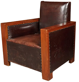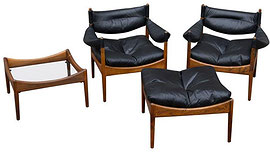 Jacaranda and Leather Armchair and Otttoman by Jean Gillon