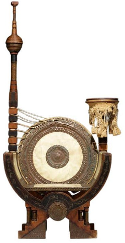 Chaise Curule en cuivre et parchemin de Carlo Bugatti. Recouvert de parchemin et incrusté de détails en étain et monté de décorations en cuivre martelé. Italie : vers 1902 illustrer cet exemple Carlo-Rembrandt-Ettore-Jean Bugatti, Dejean, p. 44