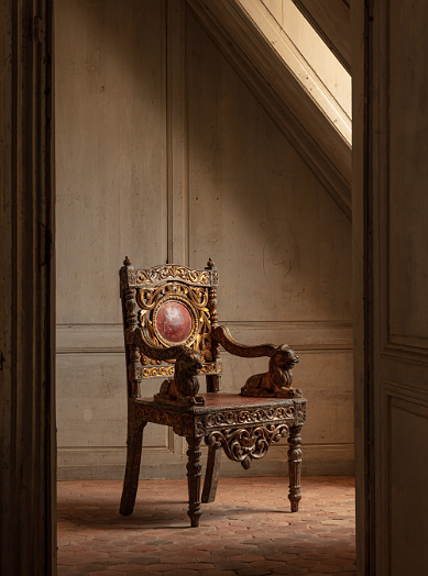 Fauteuil d’apparat en Bois Peint et Doré, Inde du Sud, Tamil Nadu