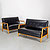 Pair of patent leather and bleached walnut settees by T.H. Robsjohn-Gibbings model no.1679. USA: circa 1950