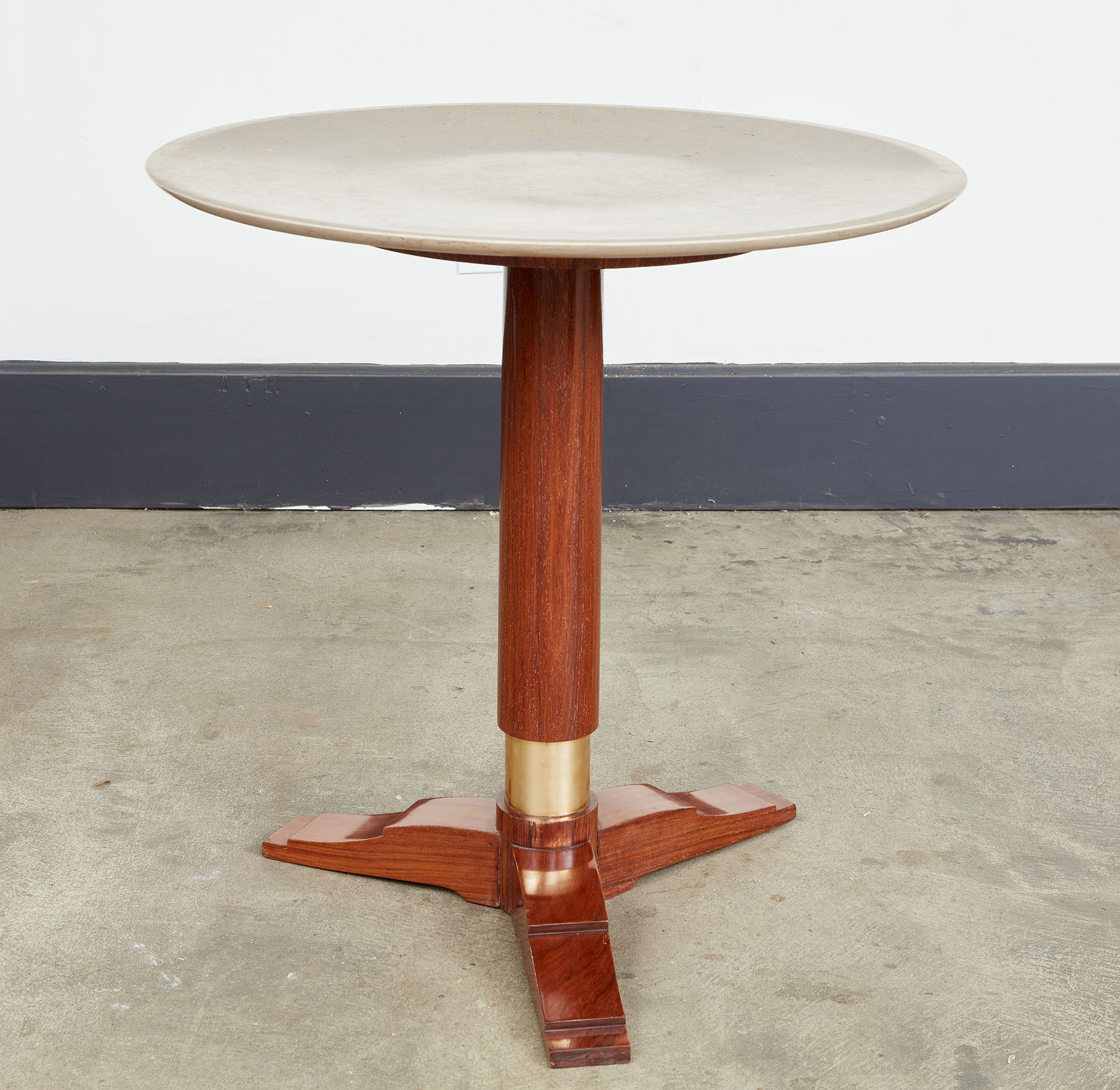 Italian mahogany mid century side table with stone top. Italy: circa 1950