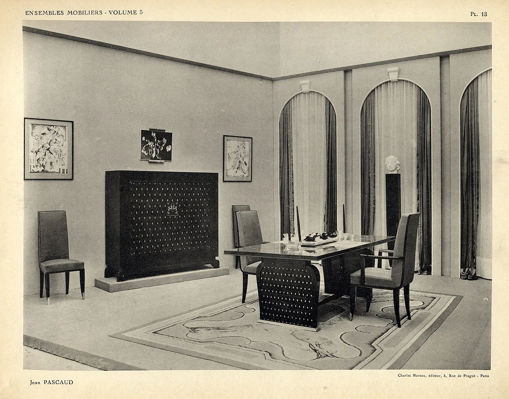 Oak table console by Jean Pascaud with stone top France:circa 1935 provenance: Galerie Yves Gastou, Paris | Acquired from the previous c. 1995 by the present owner literature: Les décorateurs des années 40, Foucart and Gaillemin, pg. 170 illustrates similar form