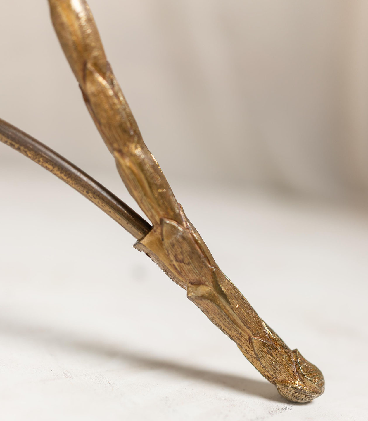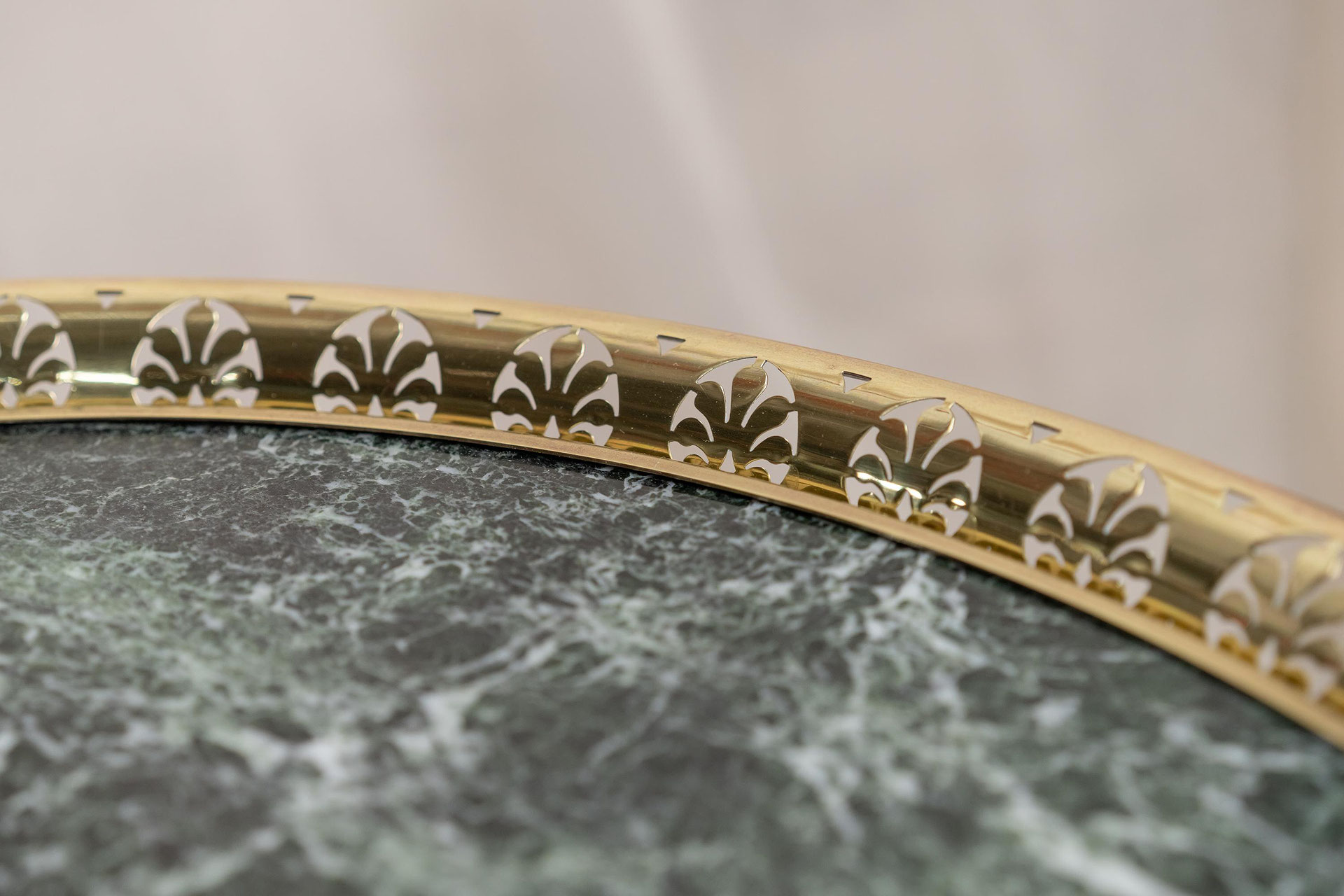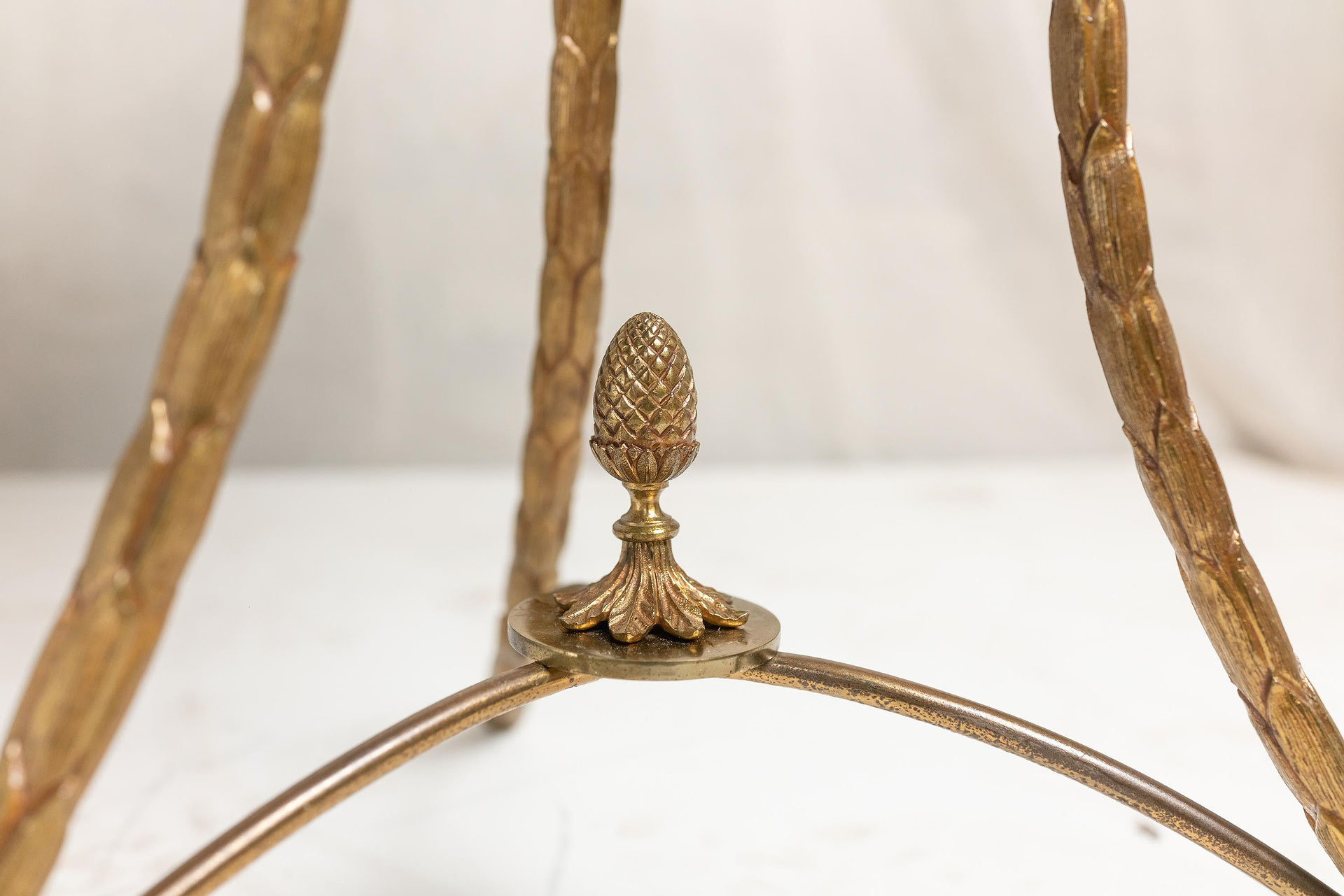 Rare fine quality gilded bronze guéridon by Maison Baguès with palm motif tripod base the gallery top fitted with "Verde Antico marble". France c.1940