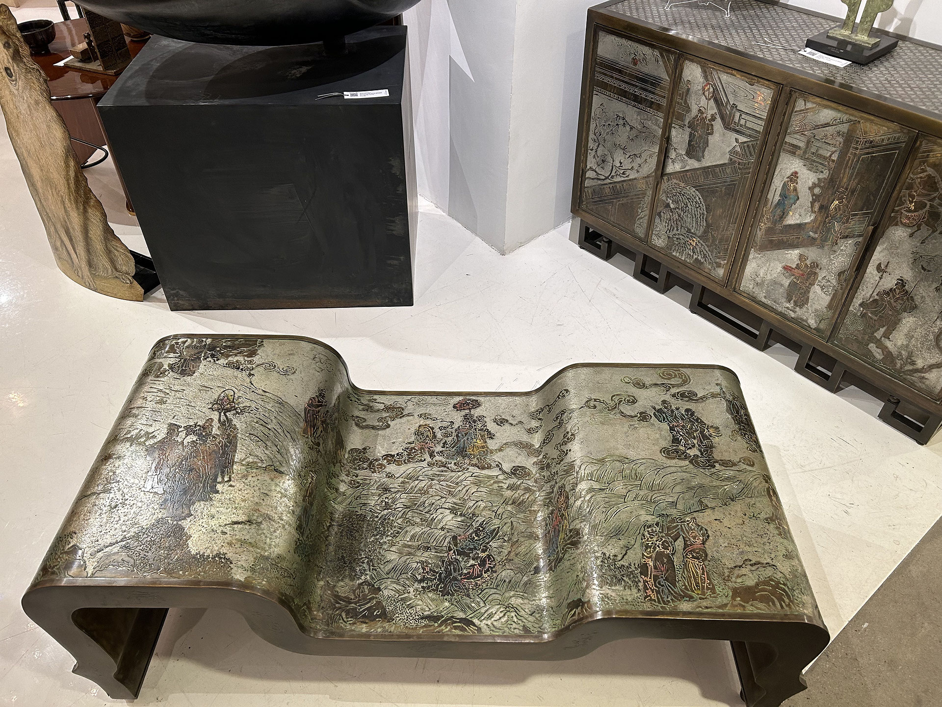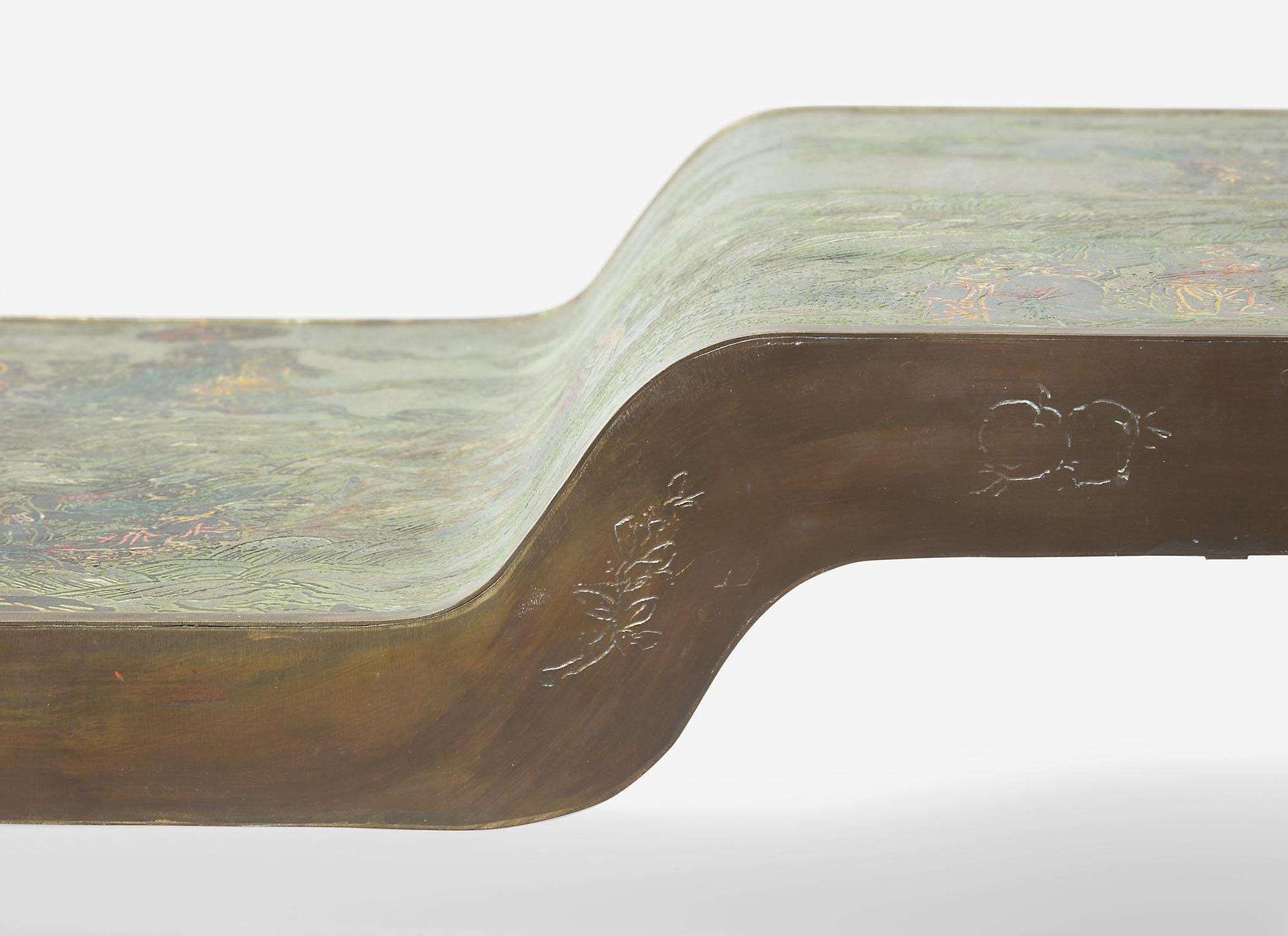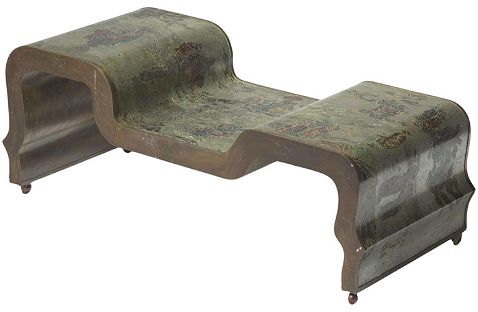 Rare table basse "Chi-Liang" en bronze patiné et étain Philip et Kelvin LaVerne