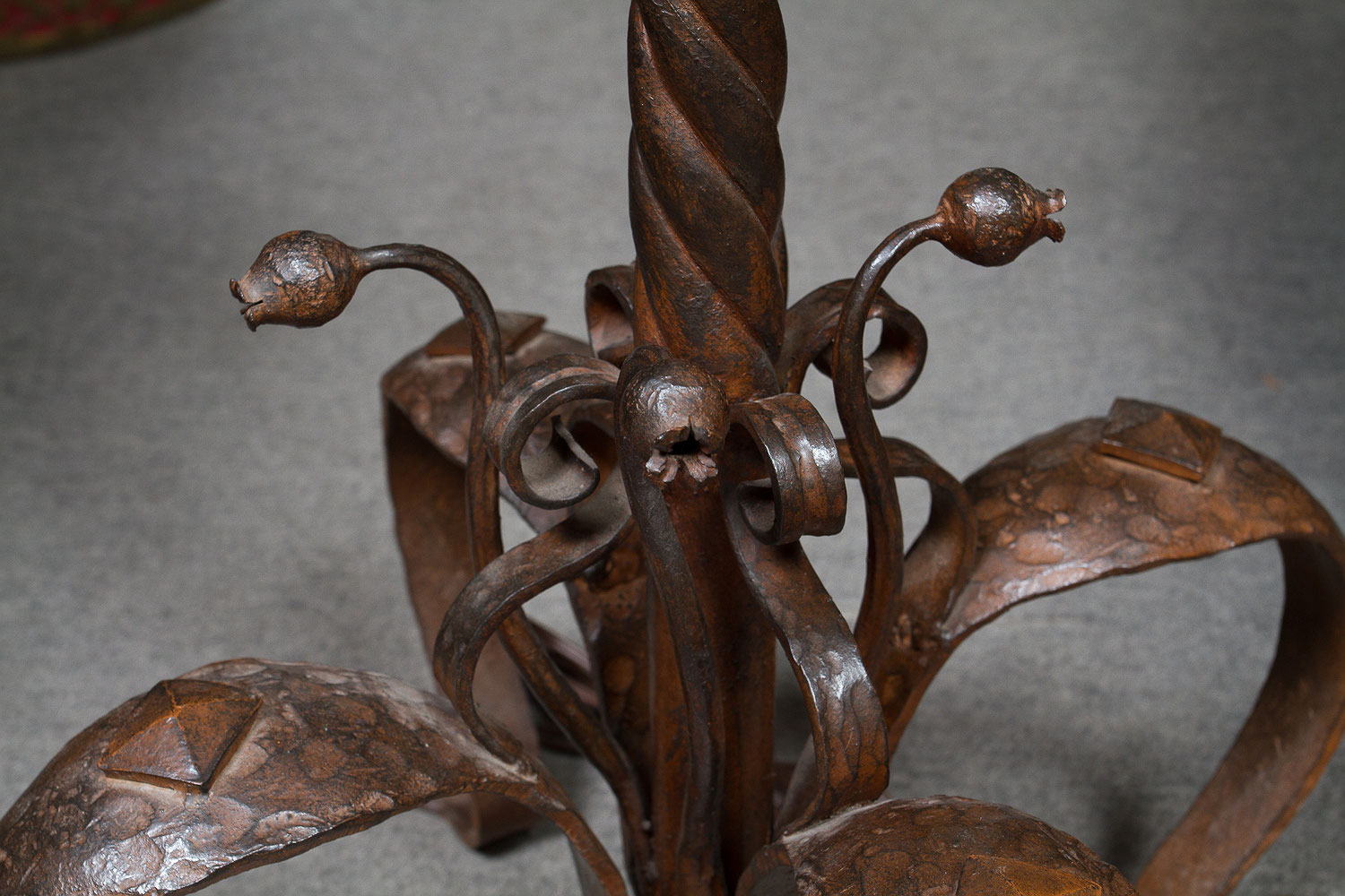 Lampe torchère de style Art Nouveau en fer forgé. Circa 1900