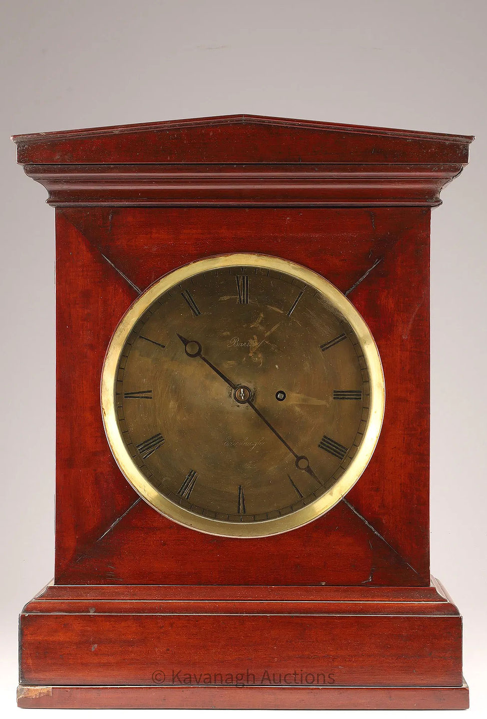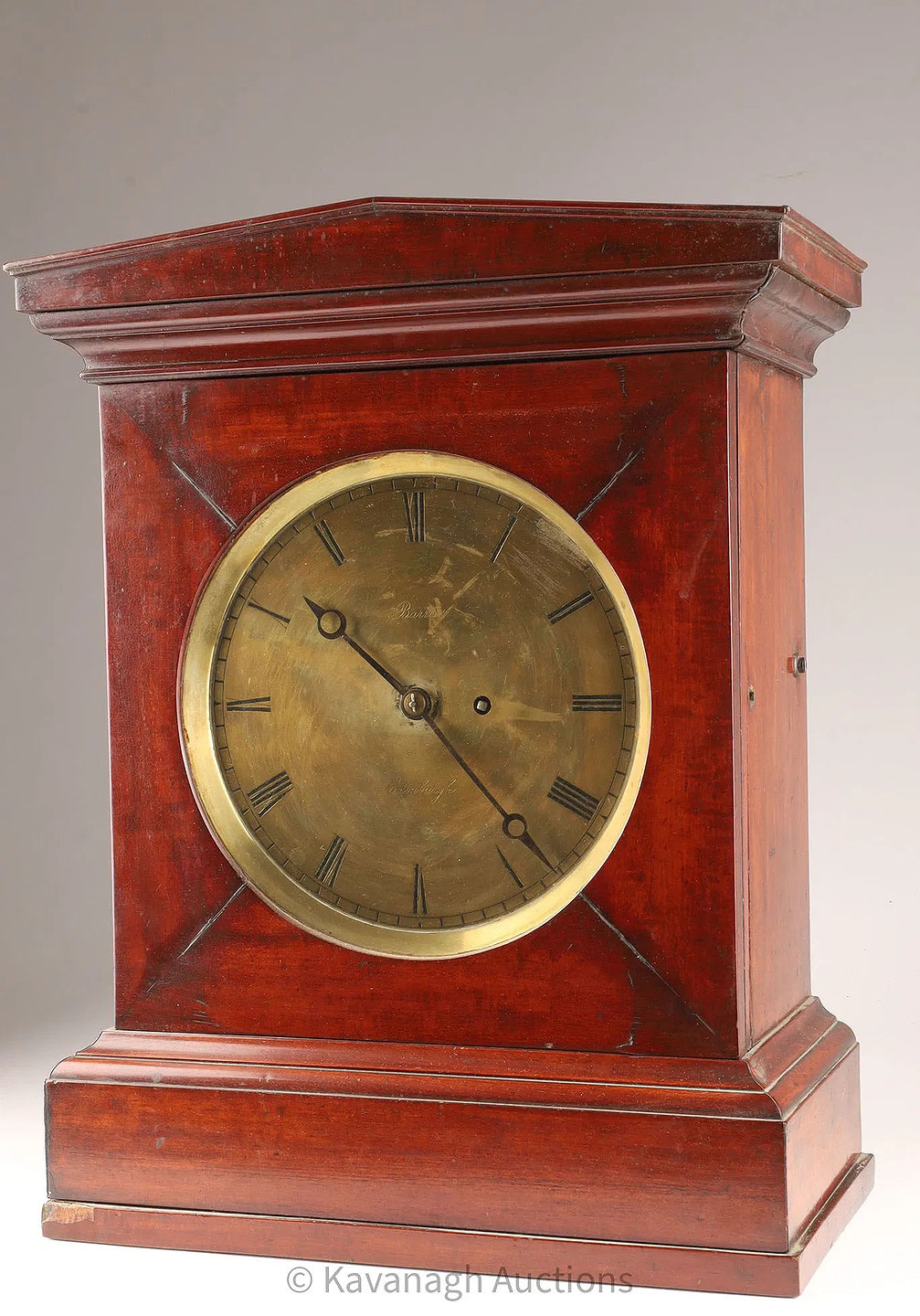 Scottish Fusee Bracket Clock from Barrie of Edinburgh. with Brass Dial Precision and Mahogany Architectural Case Functional with Key and pendulum Scotland: circa 1810