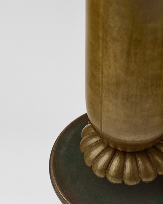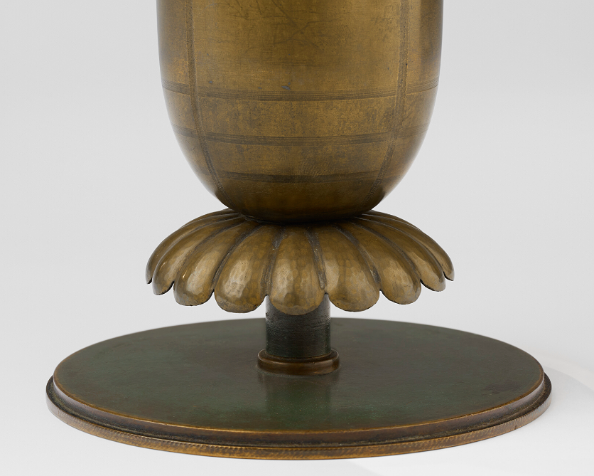Patinated Brass Vase by Paul Haustein for WMF. manufactured by Württembergische Metallwarenfabrik. Germany: circa 1920 Stamped with manufacturer's mark WMF Provenance David Bonsall, England Unity in Variety: The David Bonsall Collection of Decorative Arts & Design, Bonham's, London, 14 February 2023, lot 134 Acquired from the above by the present owner