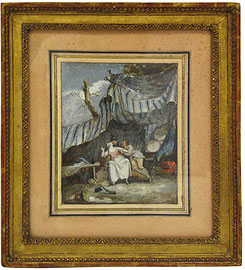 Watercolor on paper, "Les Amants" attributed to Taunay. France.