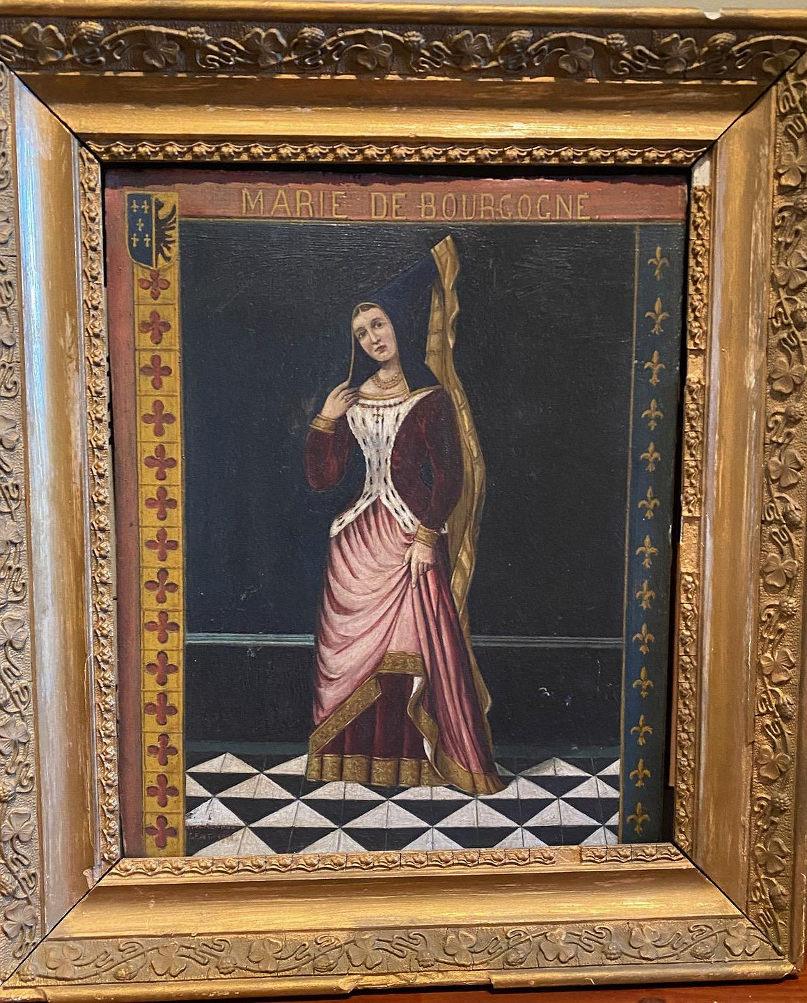 Oil on Wood Panel Religious Painting of Marie De Bourgonne.