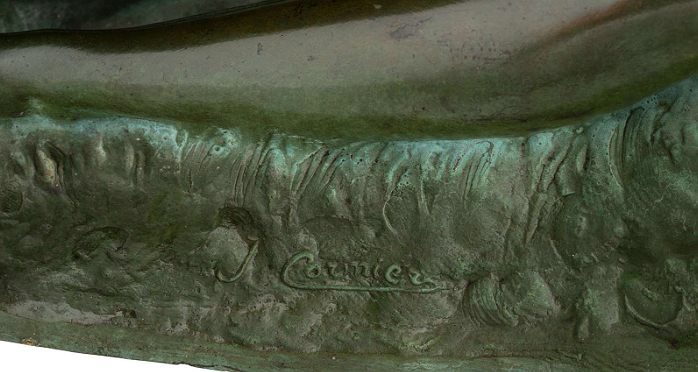 Green patinated bronze nude woman with pigeons by Joseph Emmanuel Cormier incised signatures ‘J. Cormier’ and ‘Susse Fes Edts Paris’, marked ‘lost wax’. France: circa 1930