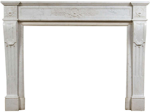 White Carrara marble Louis XVI style marble mantle.Interior dimensions: W: 40" H: 33.5" France: 1860