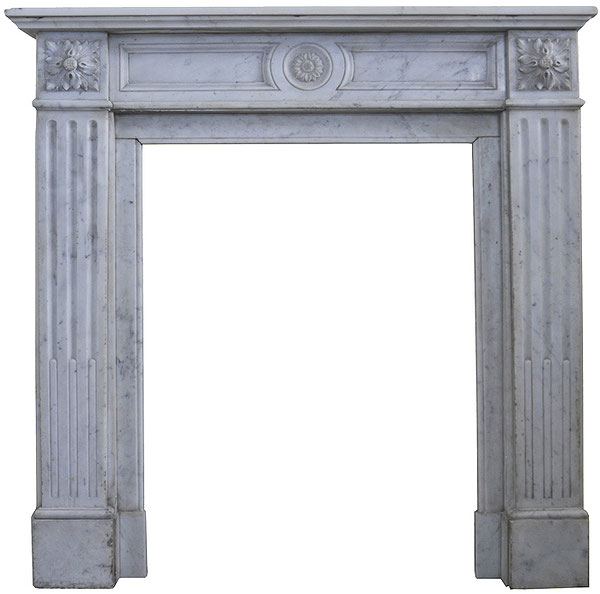 Louis XVI style carrara marble mantel. France. Opening H 36" W 45.75"