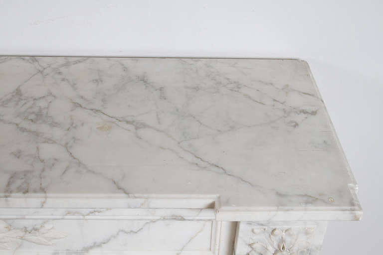 White and grey Calacata Louis XVI style marble mantel. Interior dimensions: W: 40.25" W: 33.75" France circa 1880