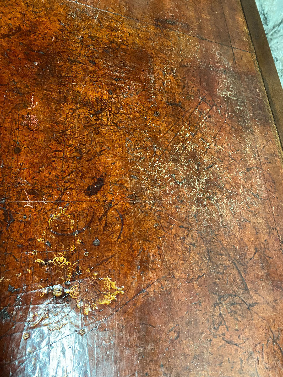Louis XVI style mahogany 'bureau plat" with a tooled leather top France: circa 1900