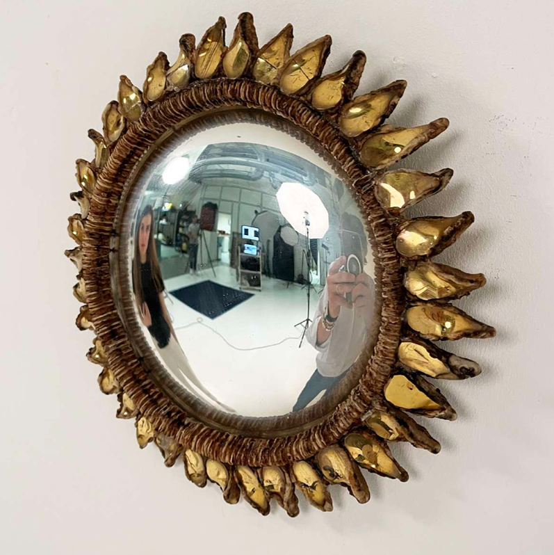 Rare and exceptional "Chardon" mirrored glass and talosel resin convex artistic mirror by Line Vautrin. France: circa 1955 Bibliography : – Line Vautrin, Miroirs, catalogue d'exposition, P. Mauriès, Le Promeneur / Galerie Chastel Maréchal, 2004, similar models pp.40, 100-101 As much artist as designer, Vautrin's prolific output encompassed jewelry, decor items and mirrors. Her works are included in the permanent collection of the musée des arts décoratifs de Paris. Highly sought after and collectible.