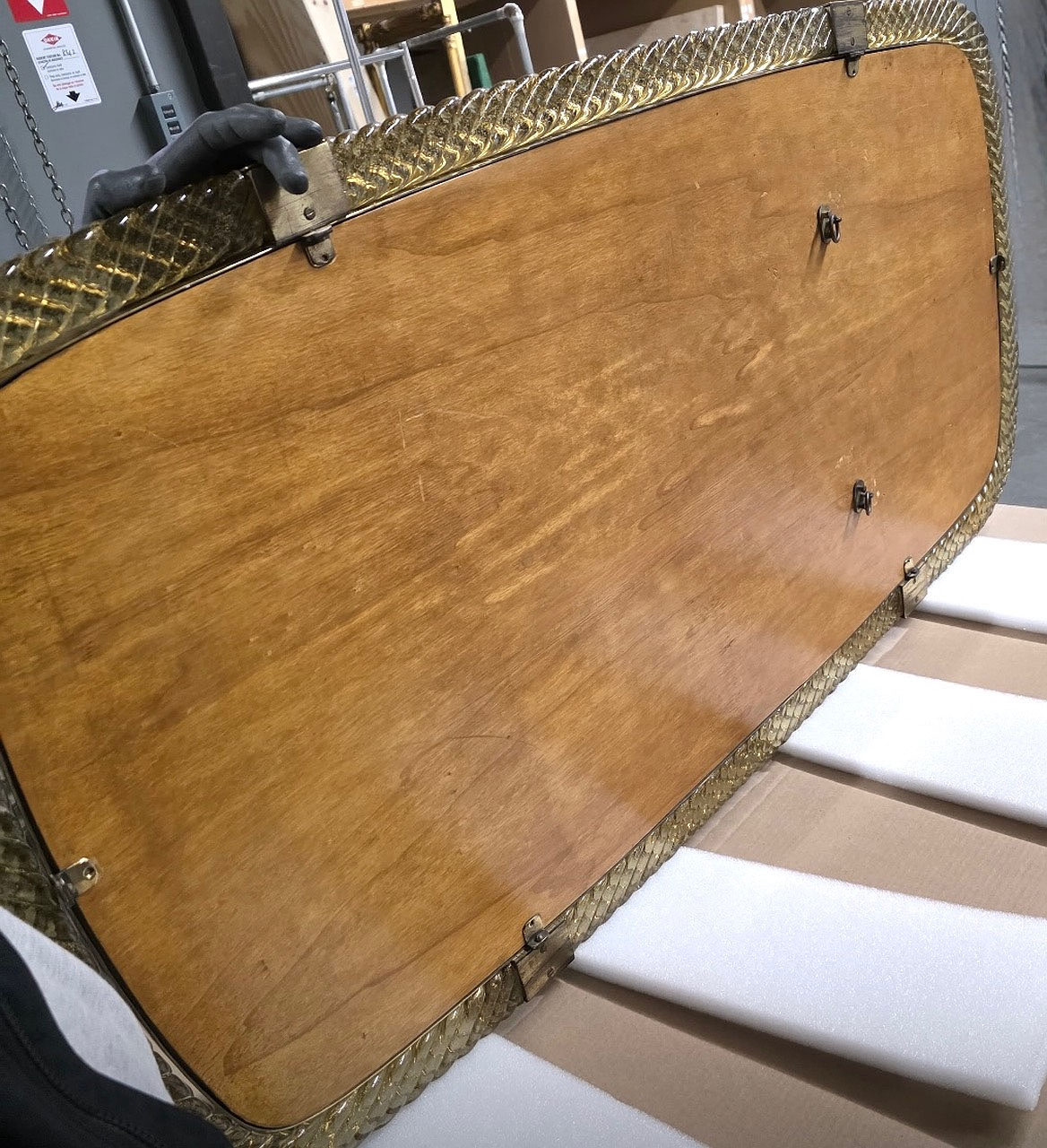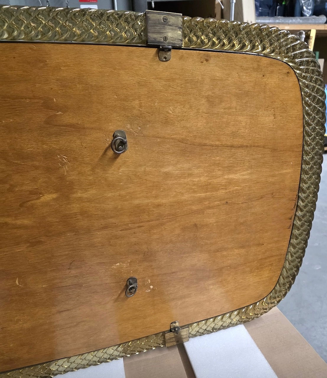 Rare and important Murano glass "Treccia" mirror with gold leaf inclusions by Paolo Venini decorated with polished brass mounts. Italy: circa 1937 provenance: Property from an Interior by Thad Hayes literature: Venini Glass: Its History, Artists, Techniques, Deboni, blue catalog, pg. 22 illustrates model