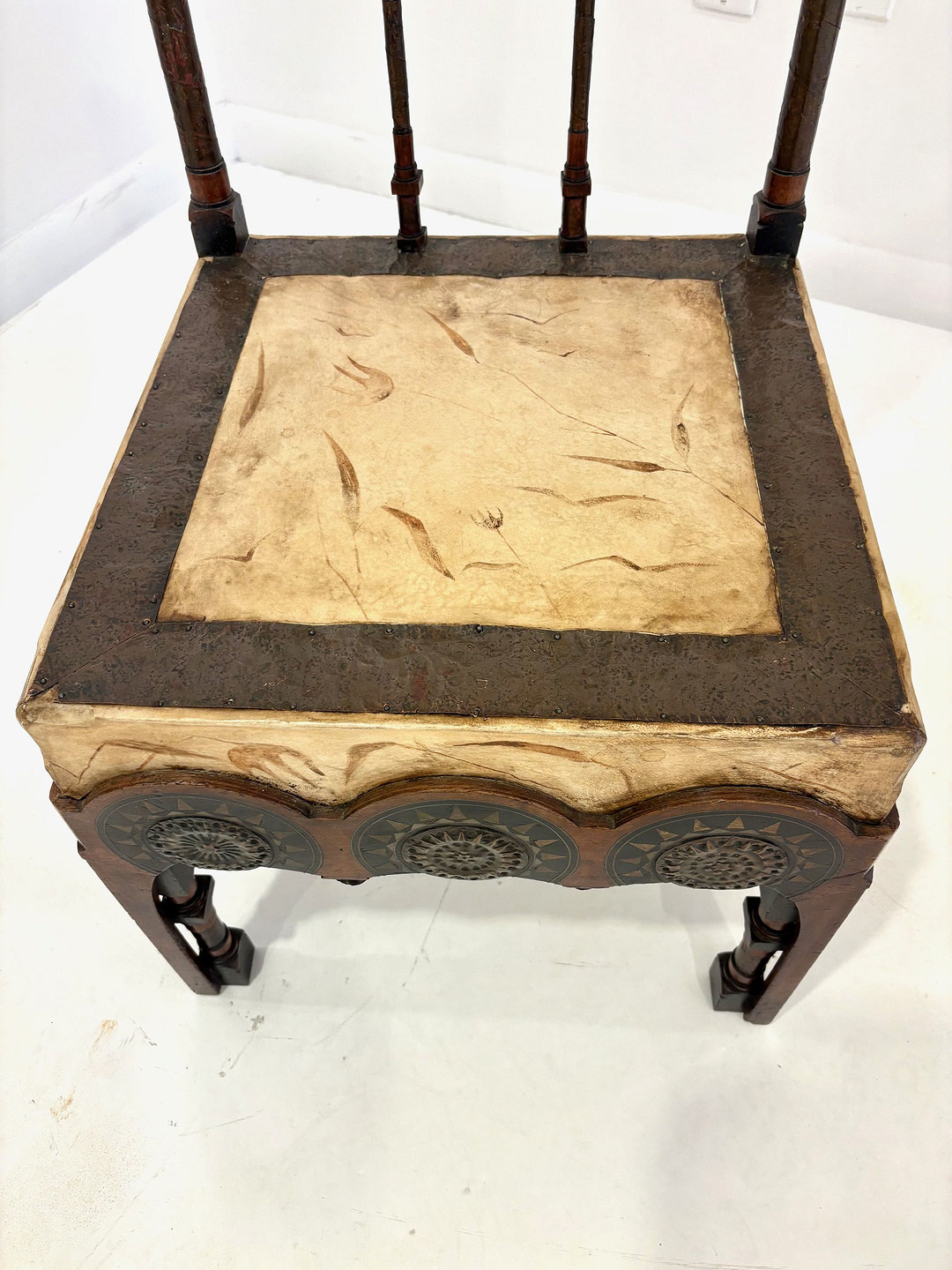 Rare Copper and Parchment Side Chair by Carlo Bugatti.