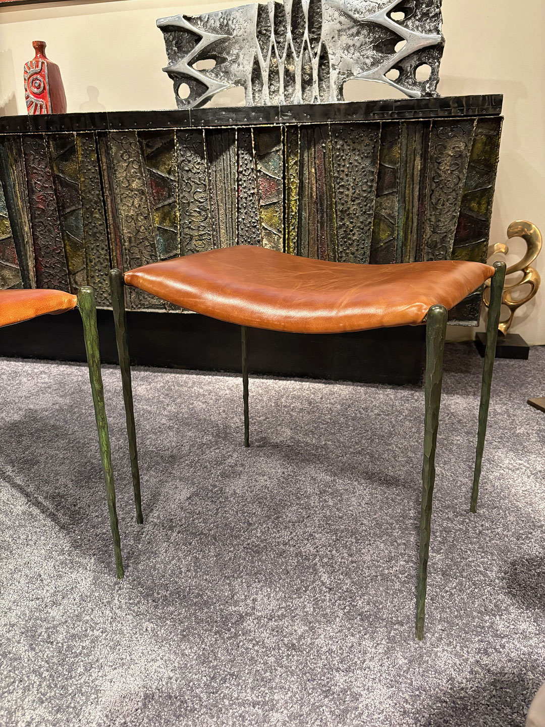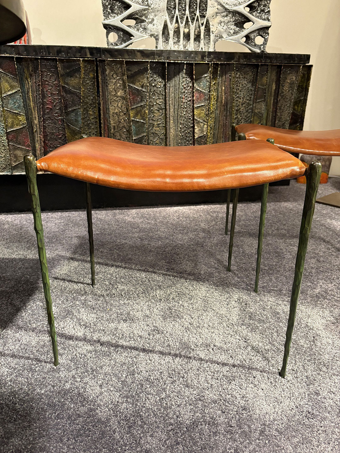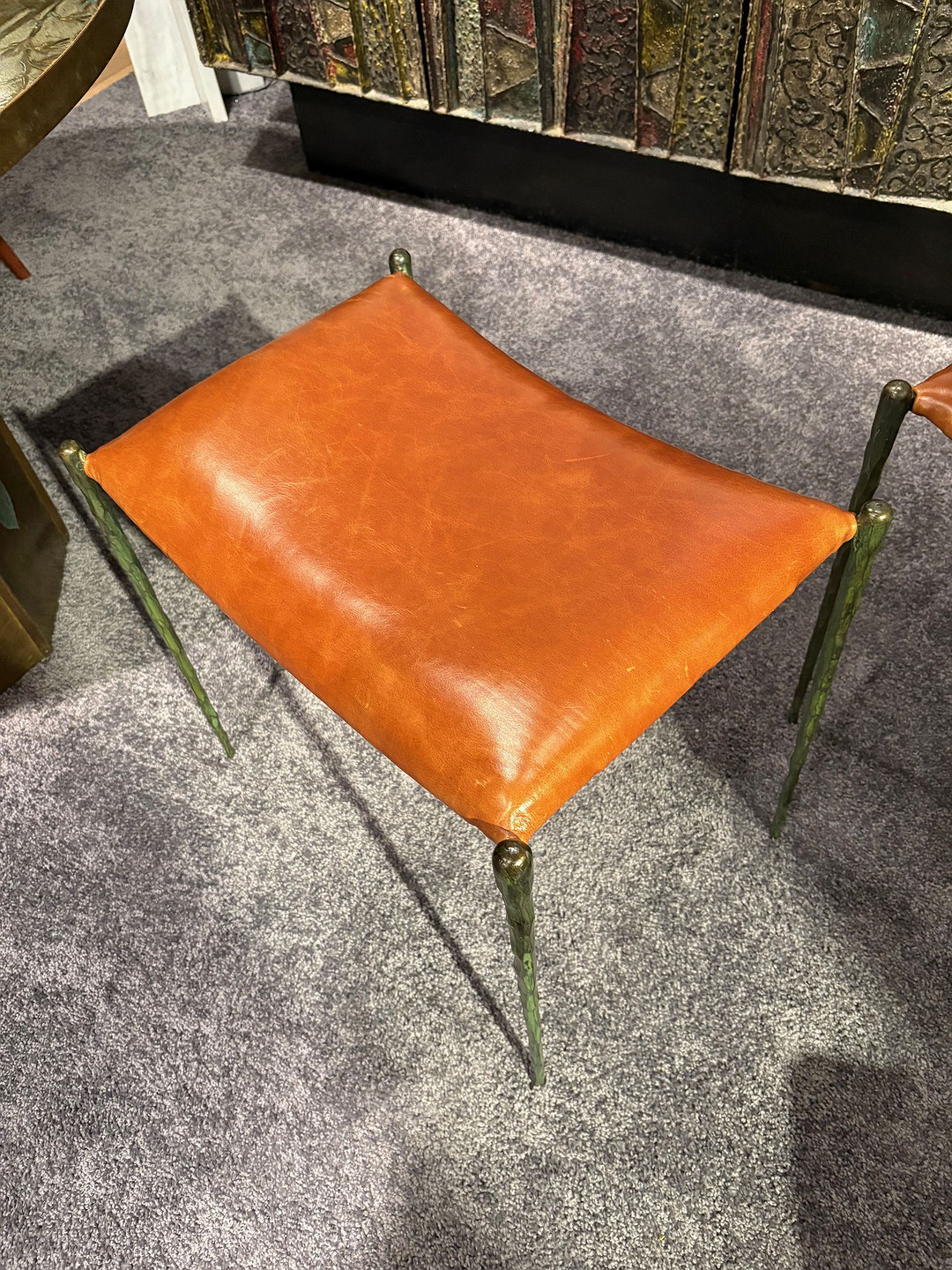 Pair of "Suave" benches in leather and hammered patinated bronze USA 2025. Studio production. Seat height 18