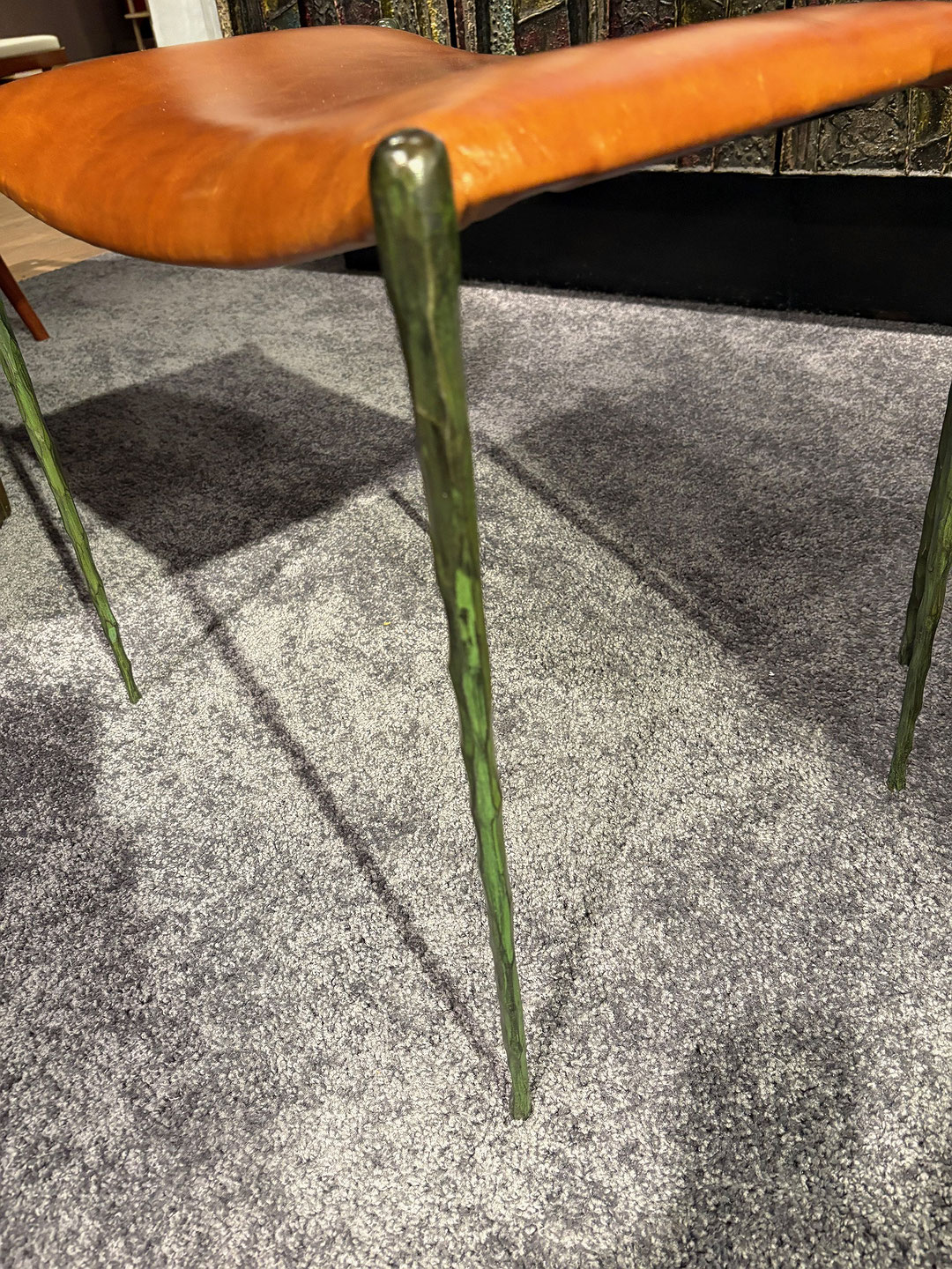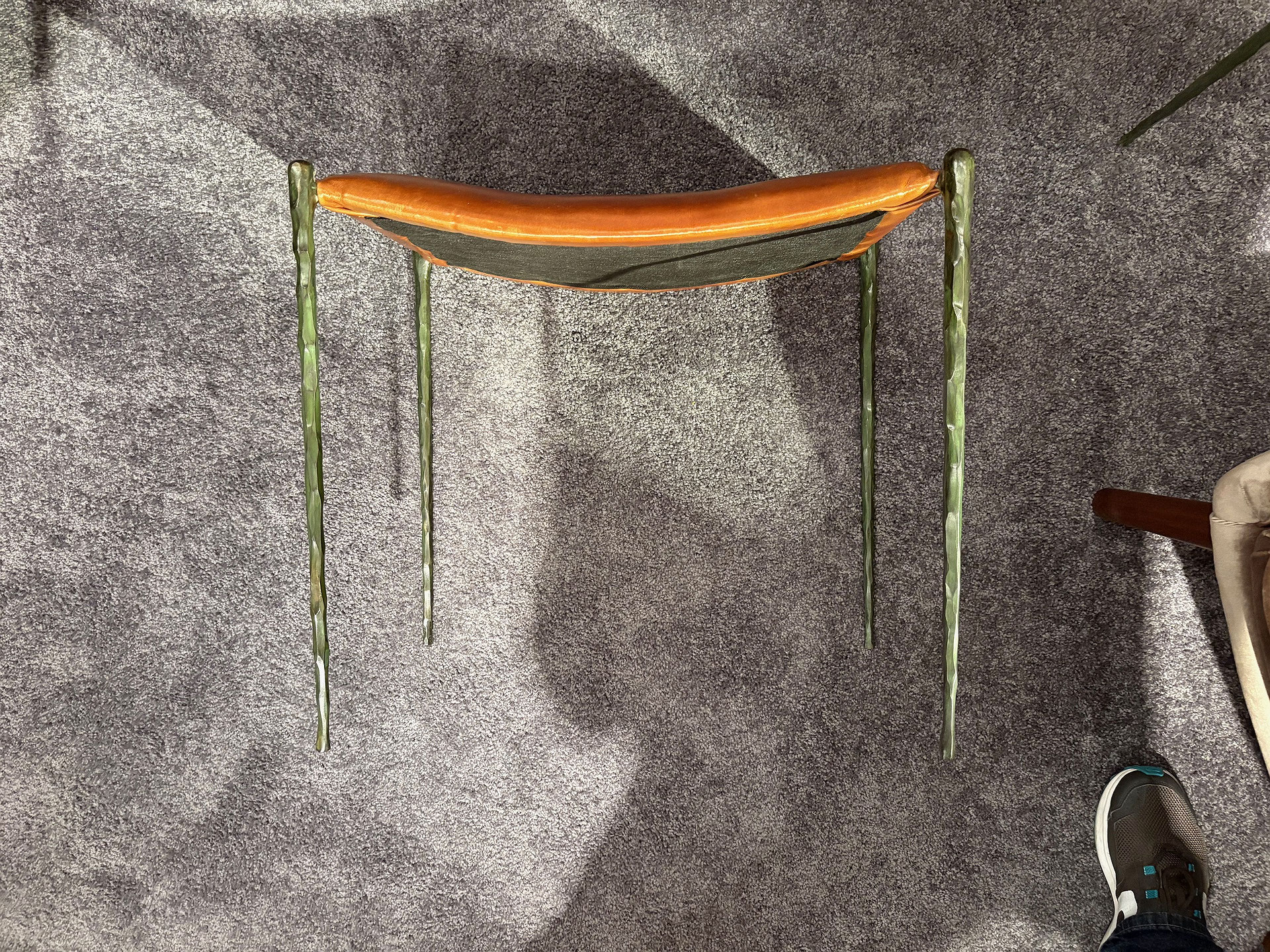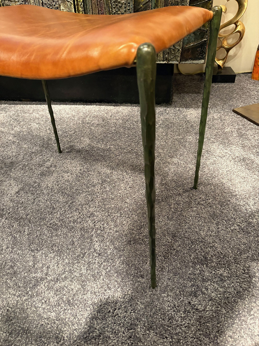 Pair of "Suave" benches in leather and hammered patinated bronze USA 2025. Studio production. Seat height 18