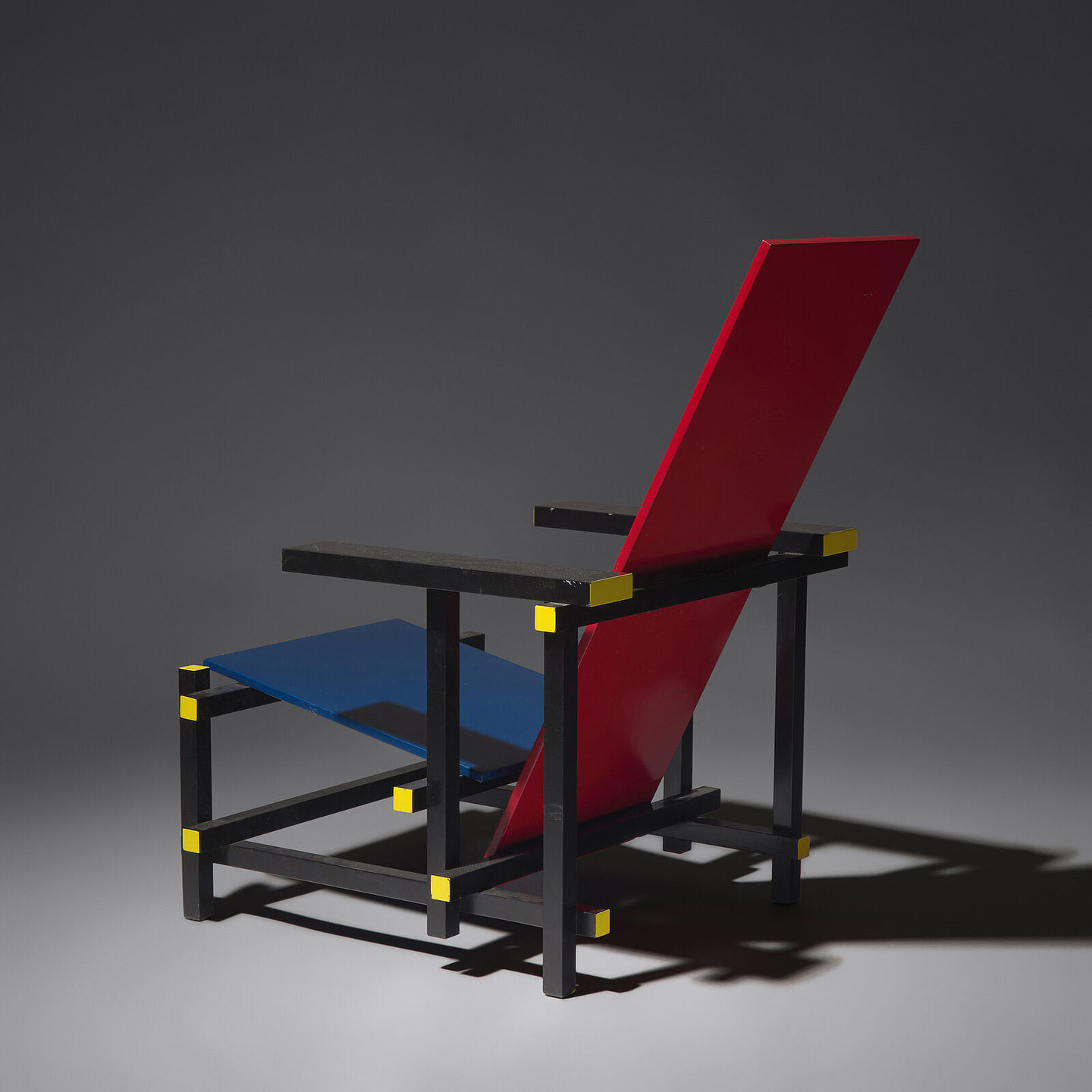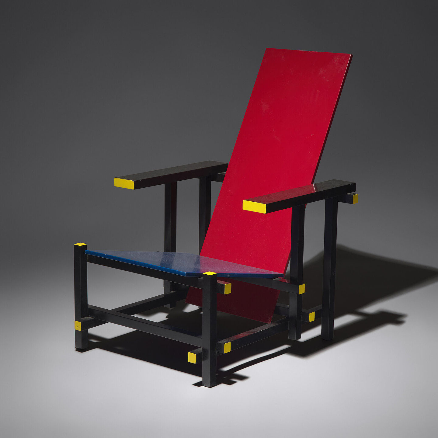 Polychrome lacquered wood armchair by Gerrit Rietveld. Marked to underside 'Cassina | Made in Italy | 6394' 1918 / c. 1990 Italy literature: Atlas of Furniture Design, Vitra Design Museum, ppg. 178-179 The Complete Rietveld Furniture, Vöge, ppg. 58-59 Gerrit th. Rietveld: The Complete Works 1888-1964, Kuper and van Zijl, ppg. 74-76