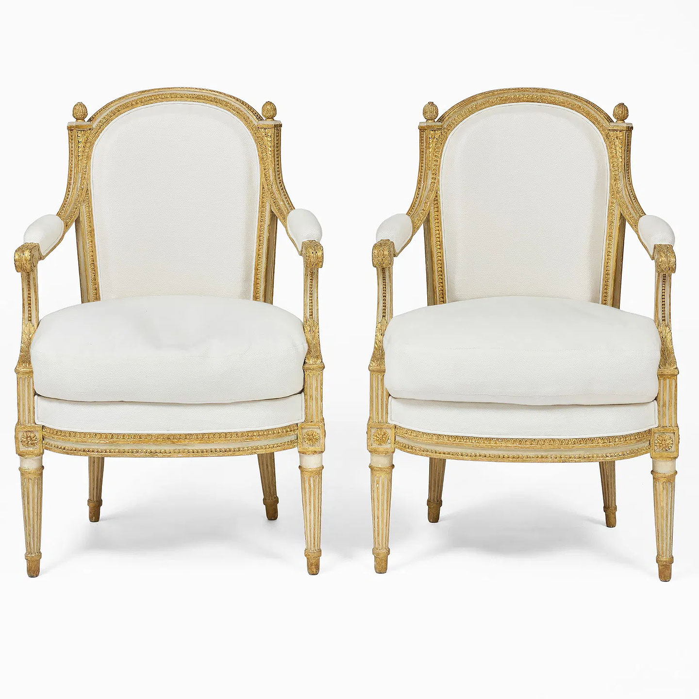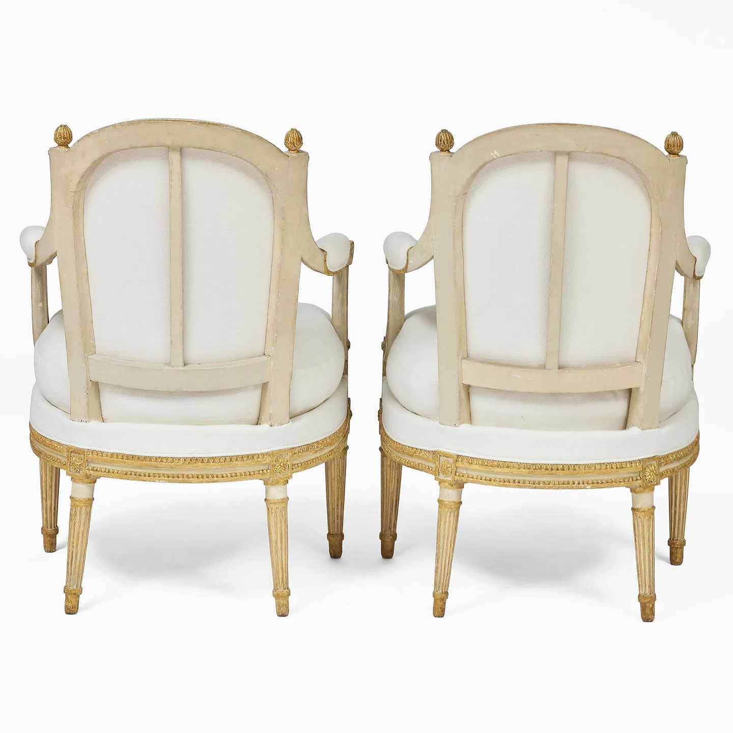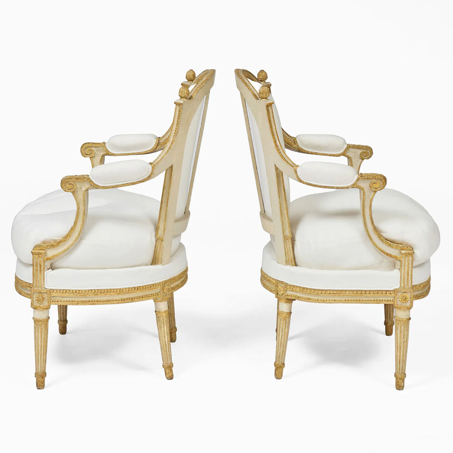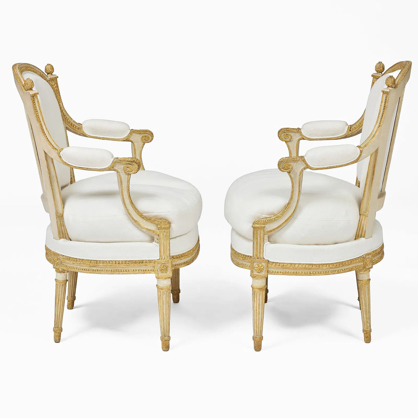 Set of Four Louis XVI Painted and Parcel-Gilt Fauteuils en Cabriolet