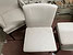 Set of four modernist walnut and upholstered dining chairs by Flair Furniture the dimensions are of the armchairs height with armrest 25.75 in. United States: circa 1960