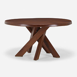 Elmwood Circular dining Table model T21D by Pierre Chapo