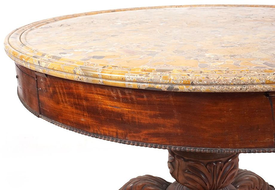 Mahogany Louis Philippe gueridon with Siena marble top with inset with 4 drawers France: circa 1840